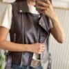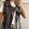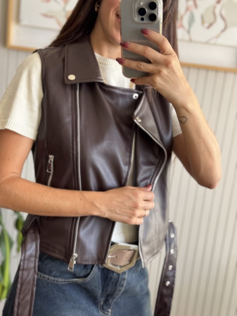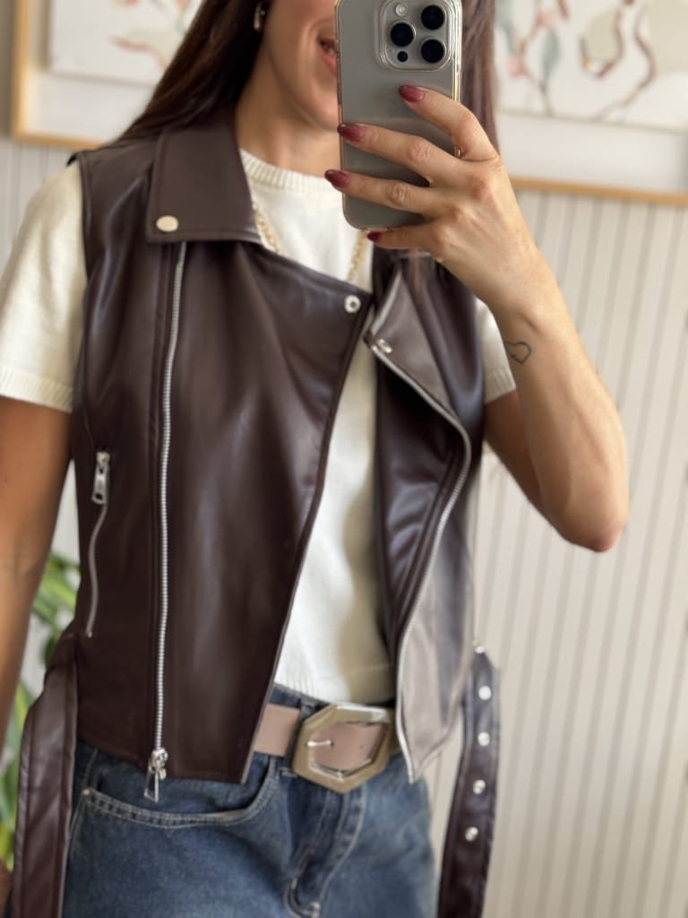 Chaleco de ecocuero marrón con cinturón (desmontable)