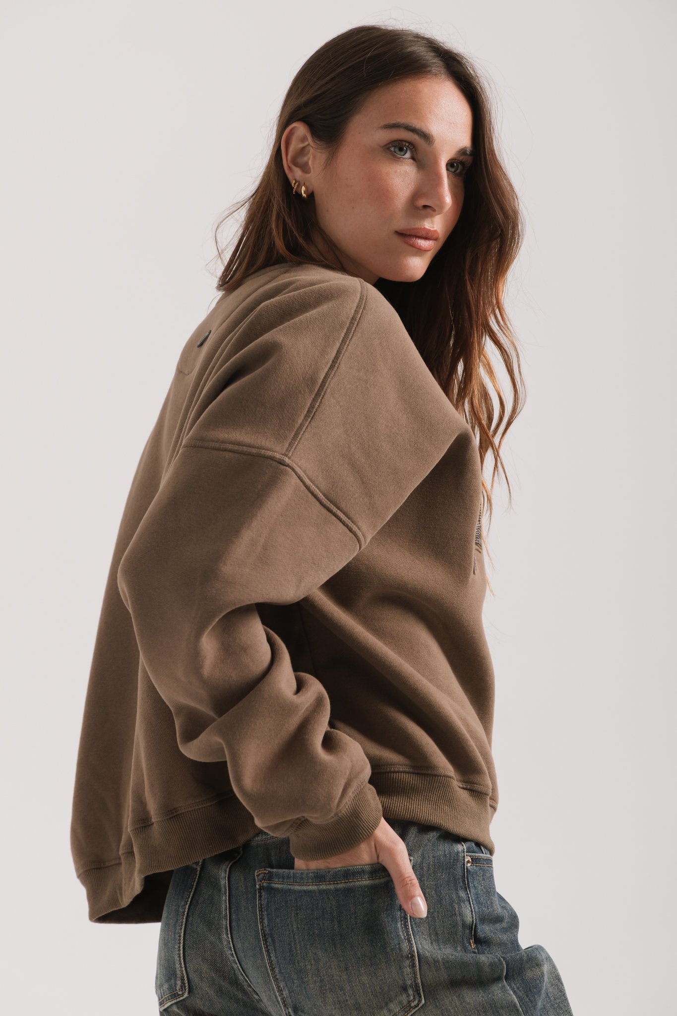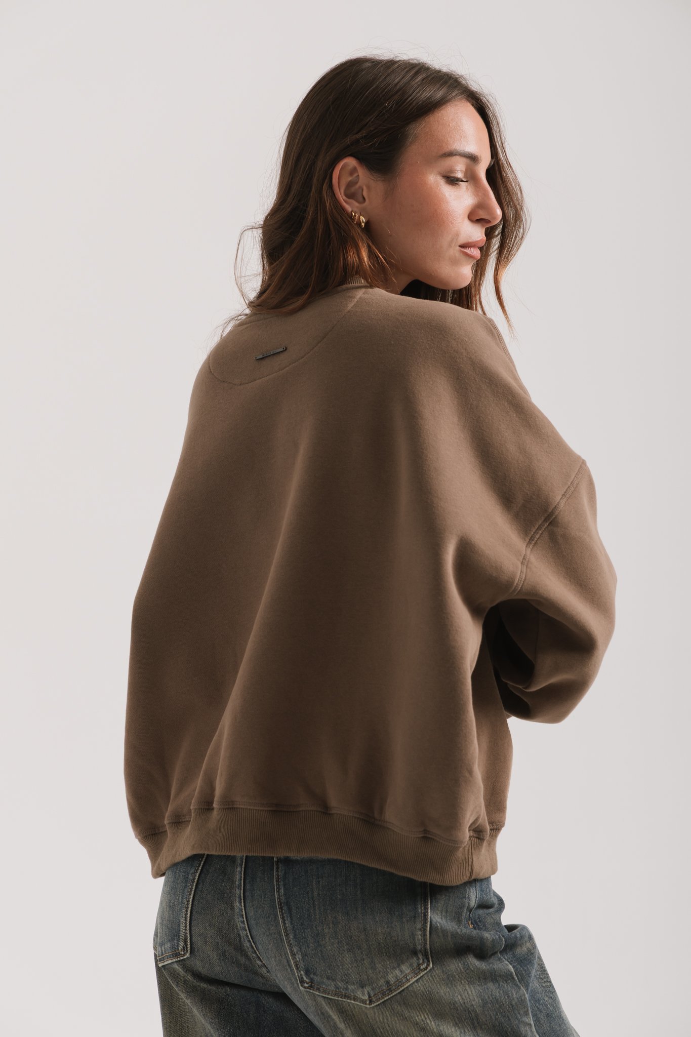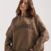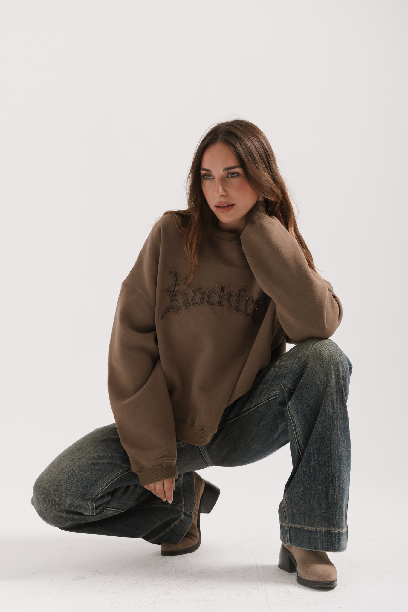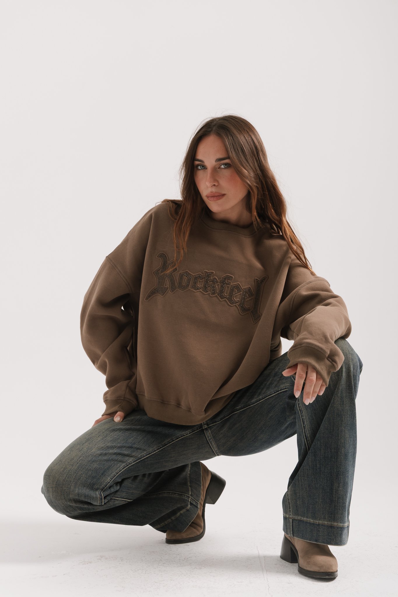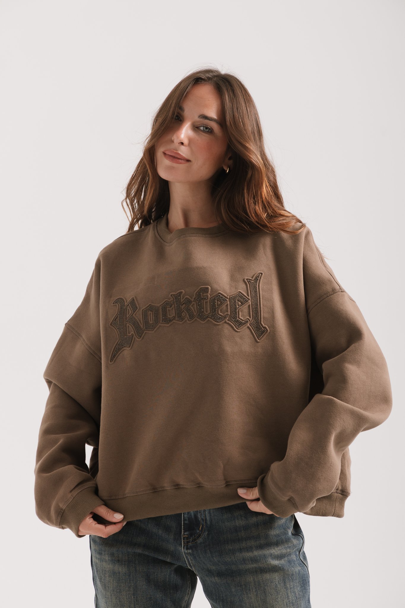 Buzo cuello redondo de algodón frisado con estampa gofrada de hotfix negros