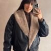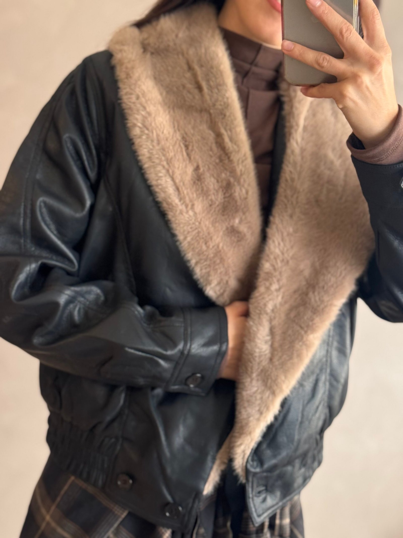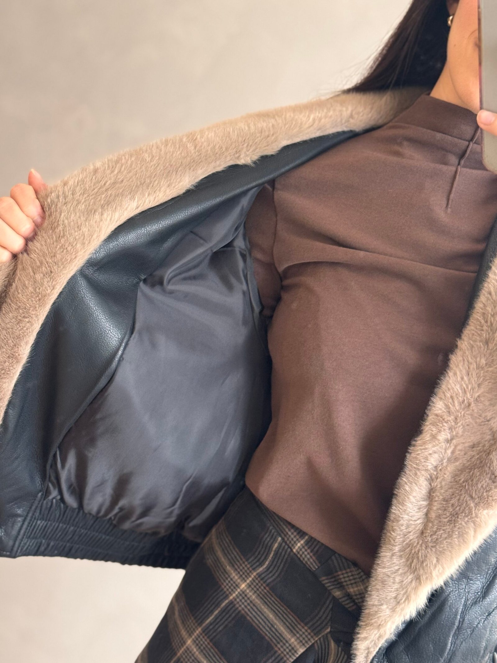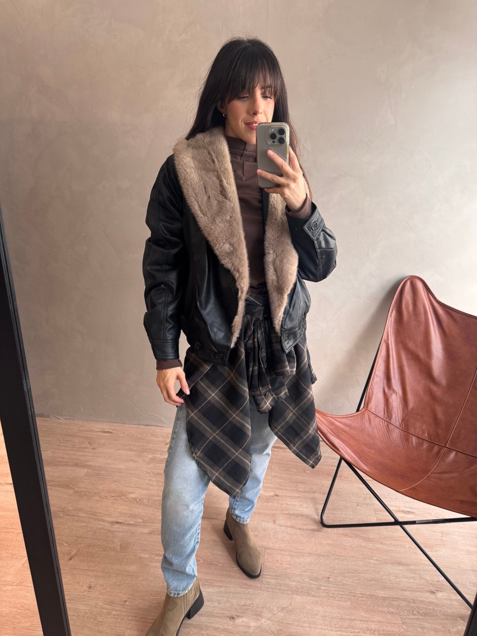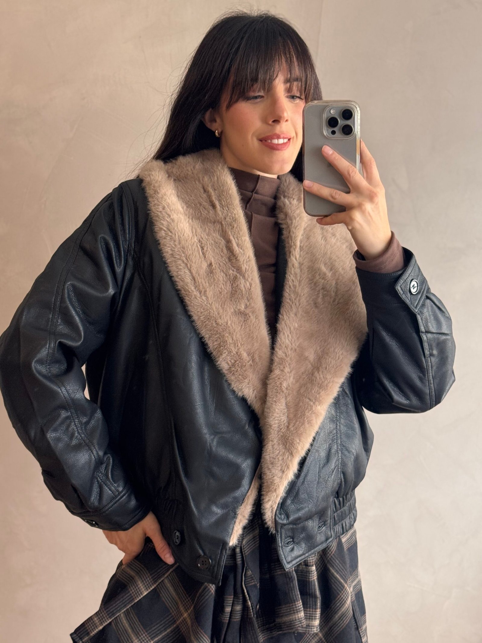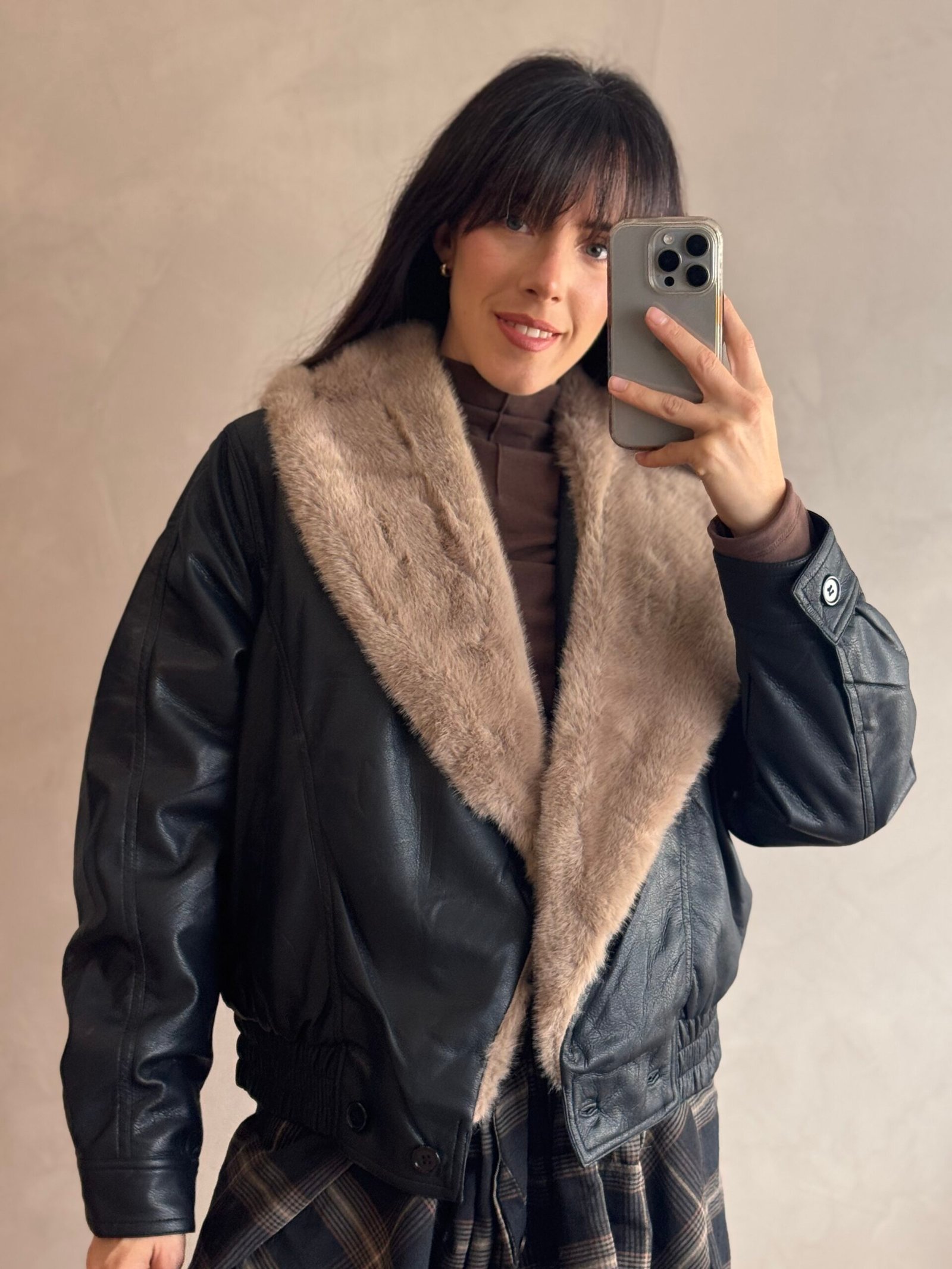 Campera de ecocuero con estilo bomber y piel en las solapas (no son desmontables)