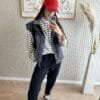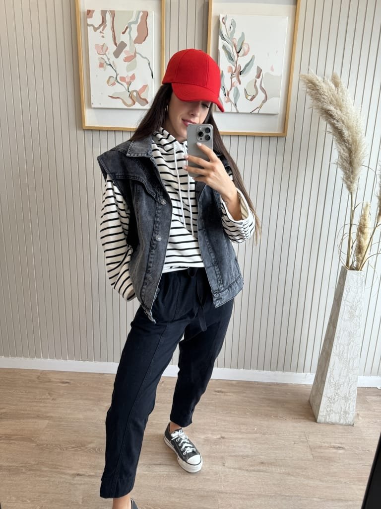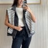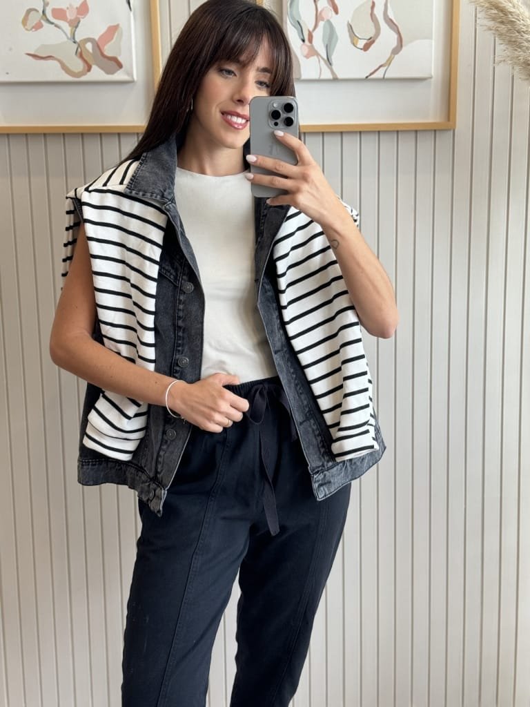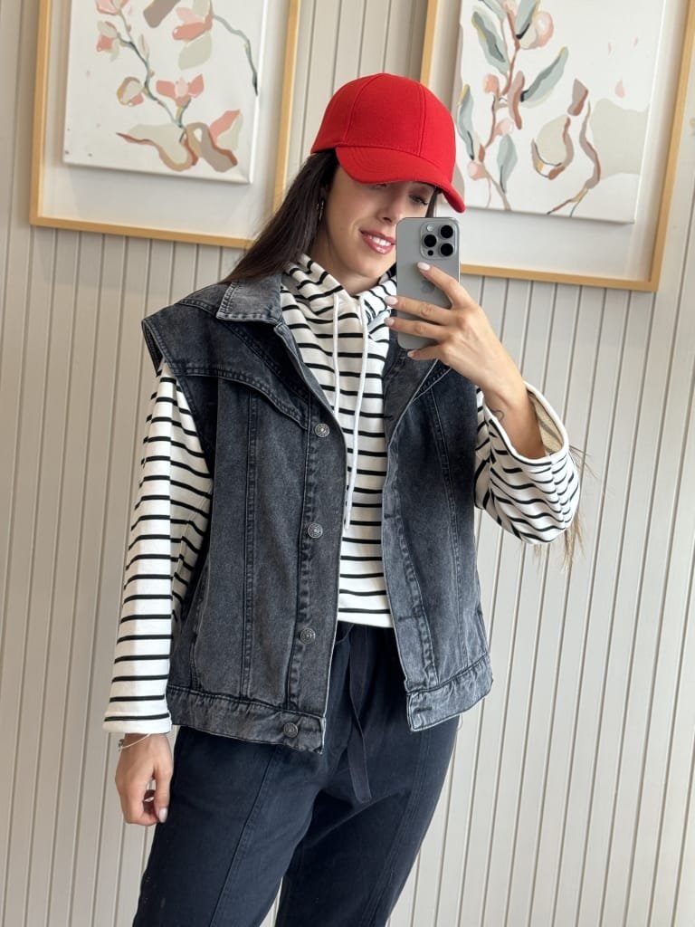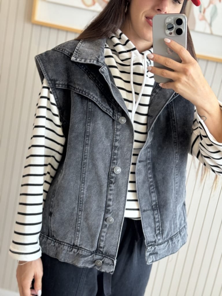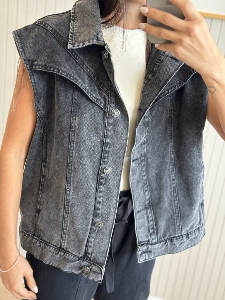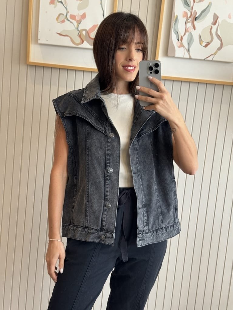 Chaleco con recortes y bolsillos delanteros. Cierre frontal con botones.