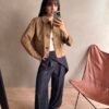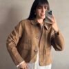 Chaqueta de simil gamuza corta con bolsillos delanteros y cuello camisa