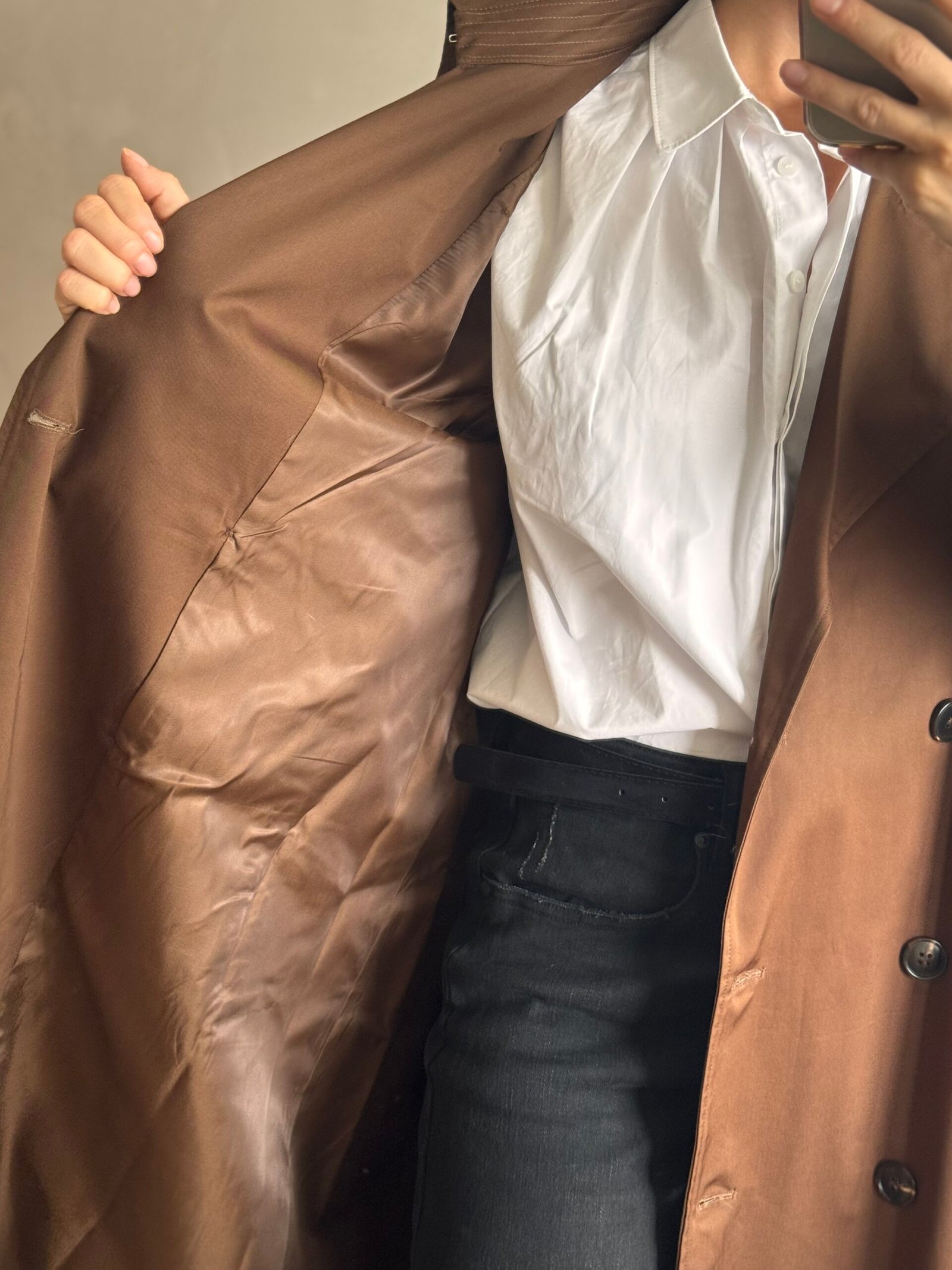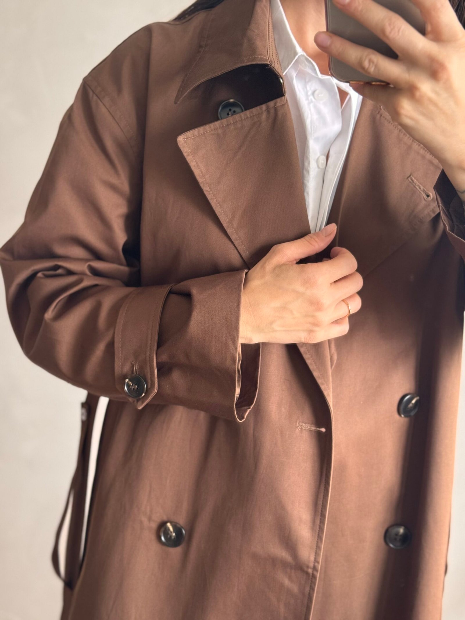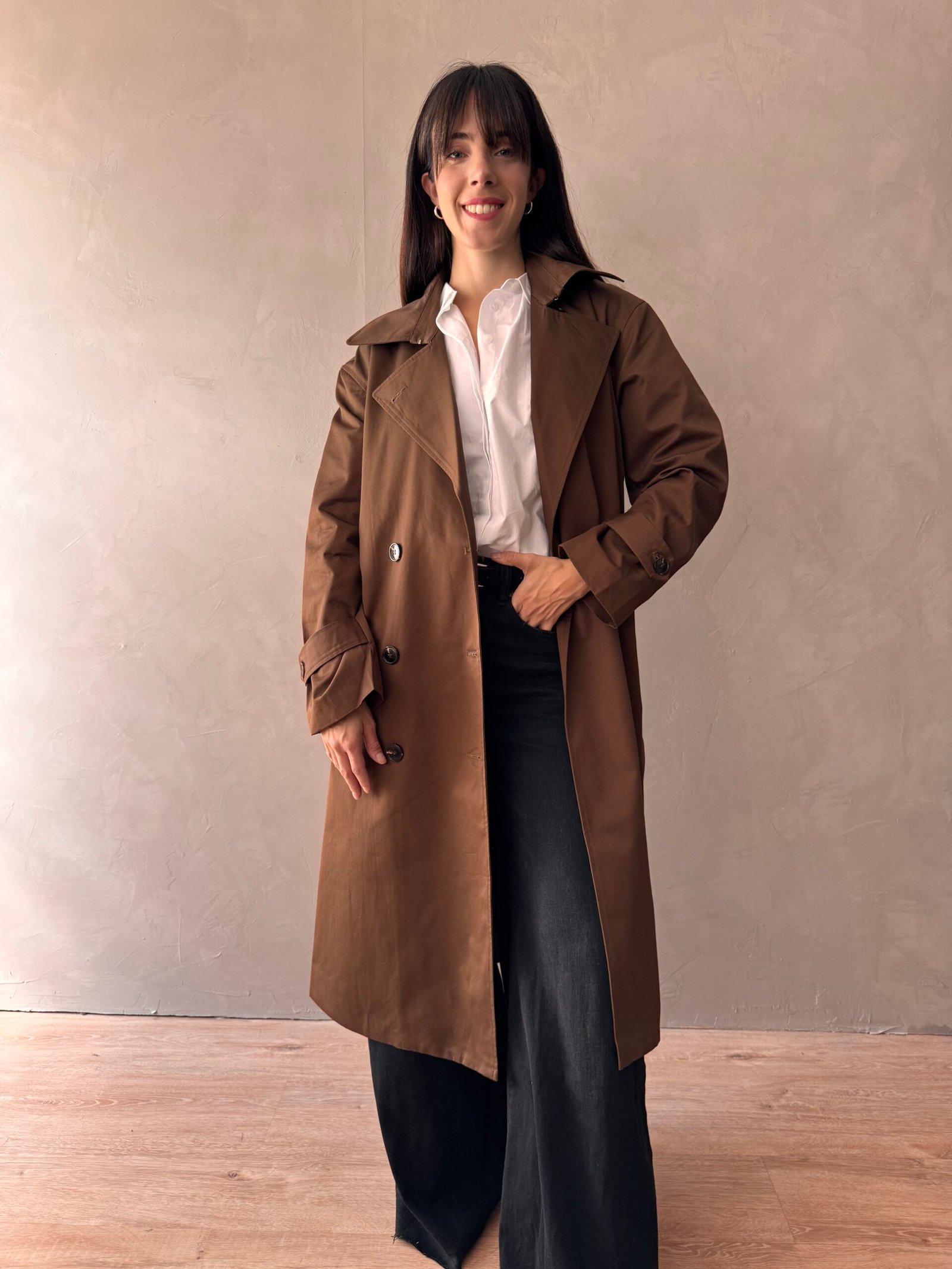 Trench impermeable de cuello solapa y manga larga acabada con trabillas y botones. Bolsillos delanteros de vivo. Bajo con abertura en espalda. Cierre frontales con boton y cinturón. Forro interior a tono. Producto importado