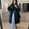 Piloto impermeable oversize con lazo para atar en la cintura.