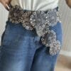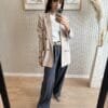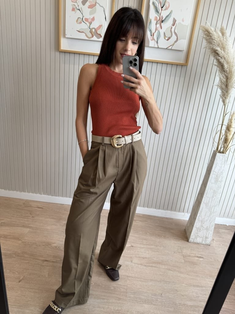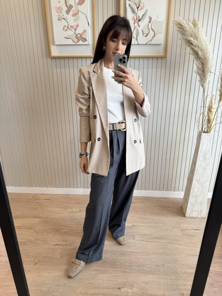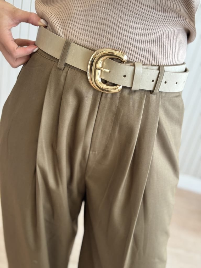 Cinturon de ecocuero beige con hebilla más grande en dorado