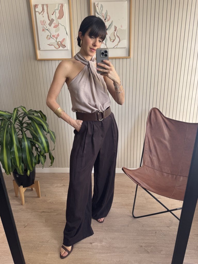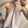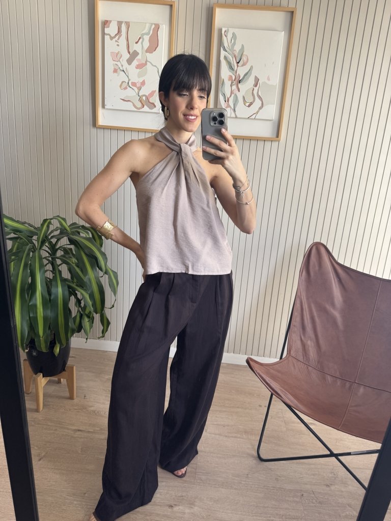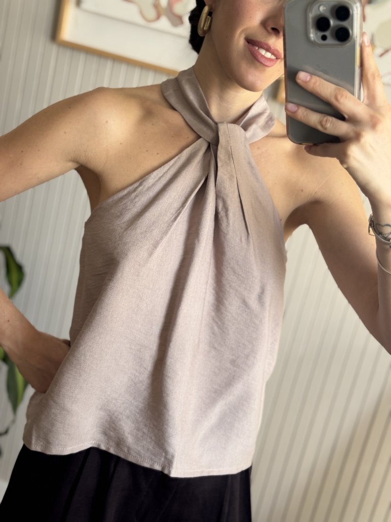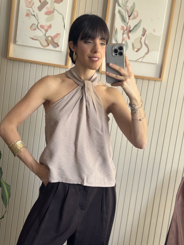 Blusa de lino camisero con nudo al cuello
