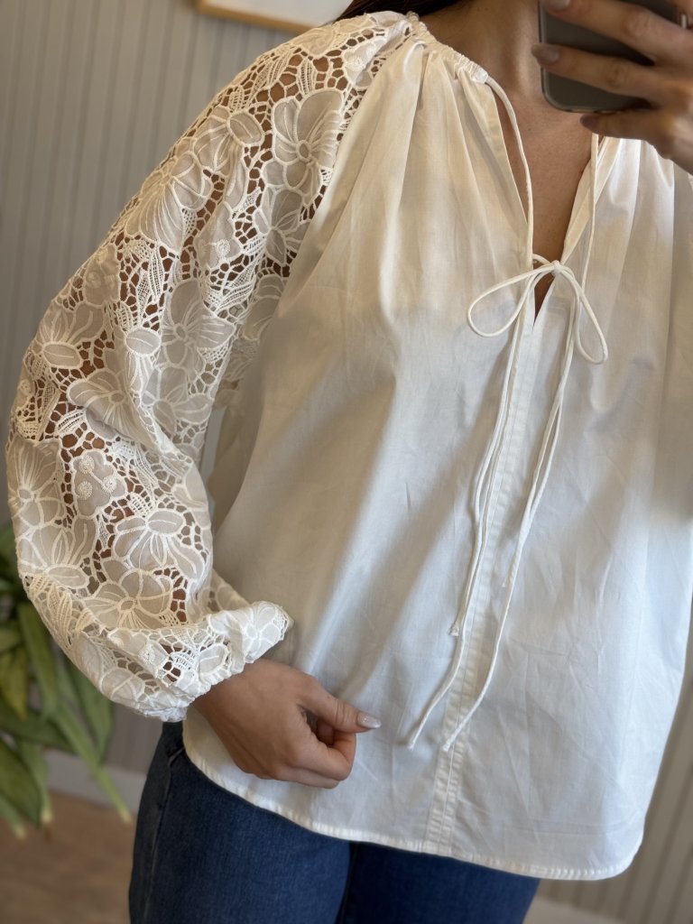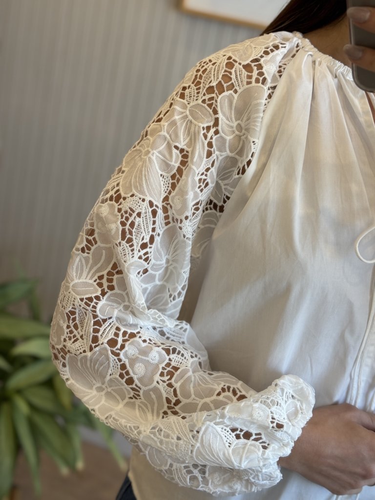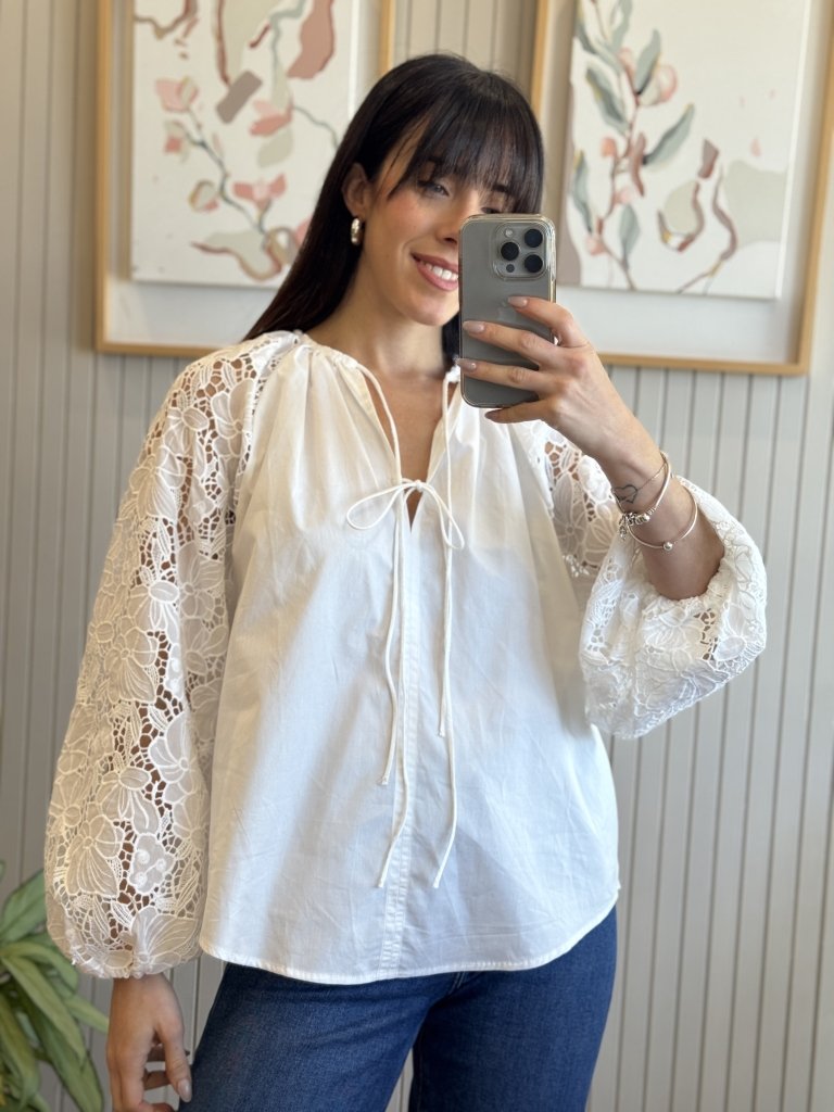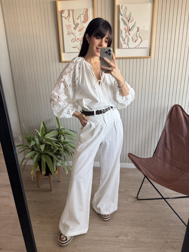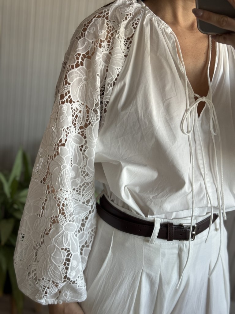 Confeccionada en Guipur(mangas) y poplin el cuerpo