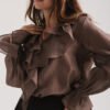 Blusa de gasa con cuello mao y volados