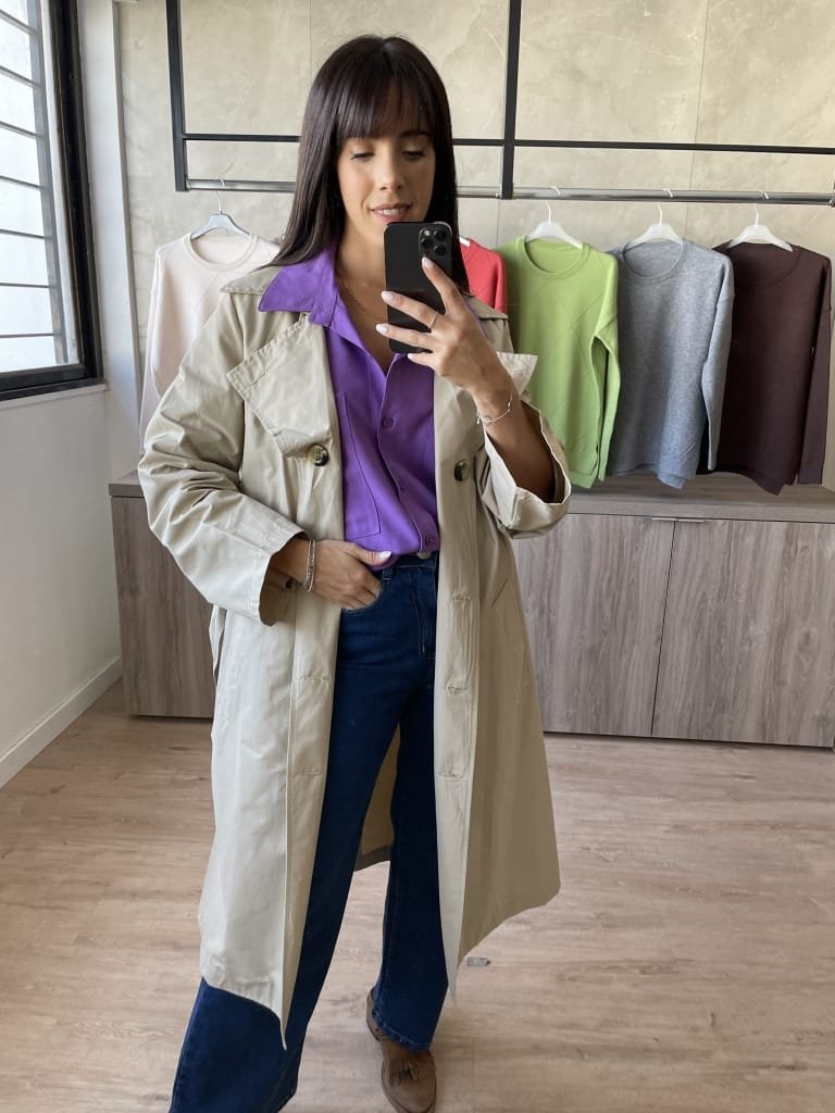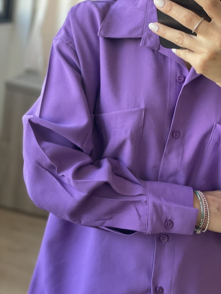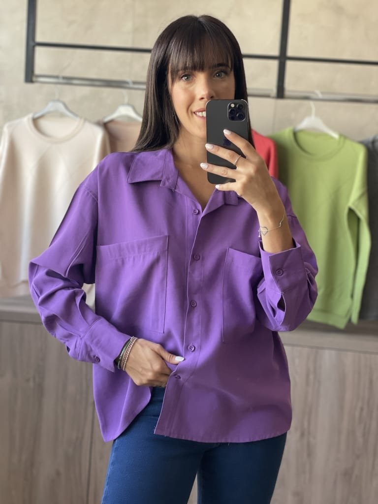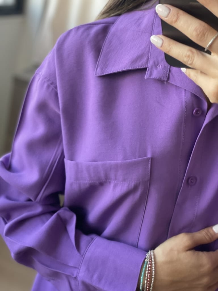 Camisa de tencel, con bolsillos en delantero y botones al tono.