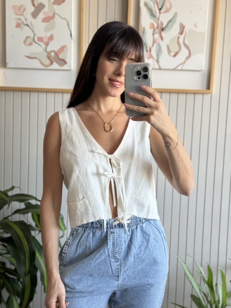 Chaleco de lino italiano con tiritas