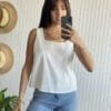 Blusa básica de lino sastrero con escote cuadrado