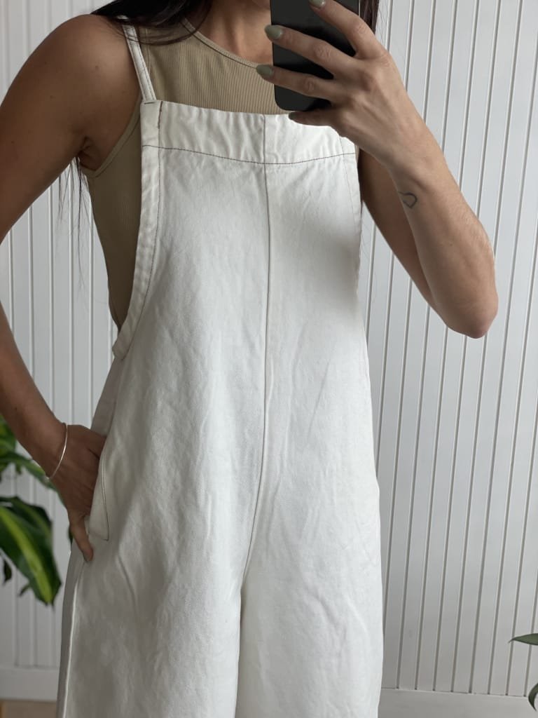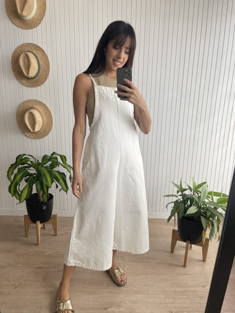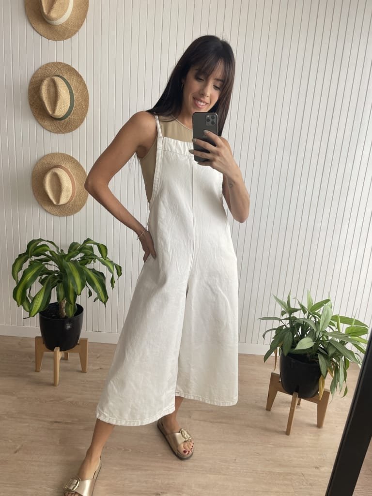 Enterito de jean con tiro y largo regulable desde breteles.