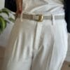 Vestido de lino clásico corte jackie con escote redondo