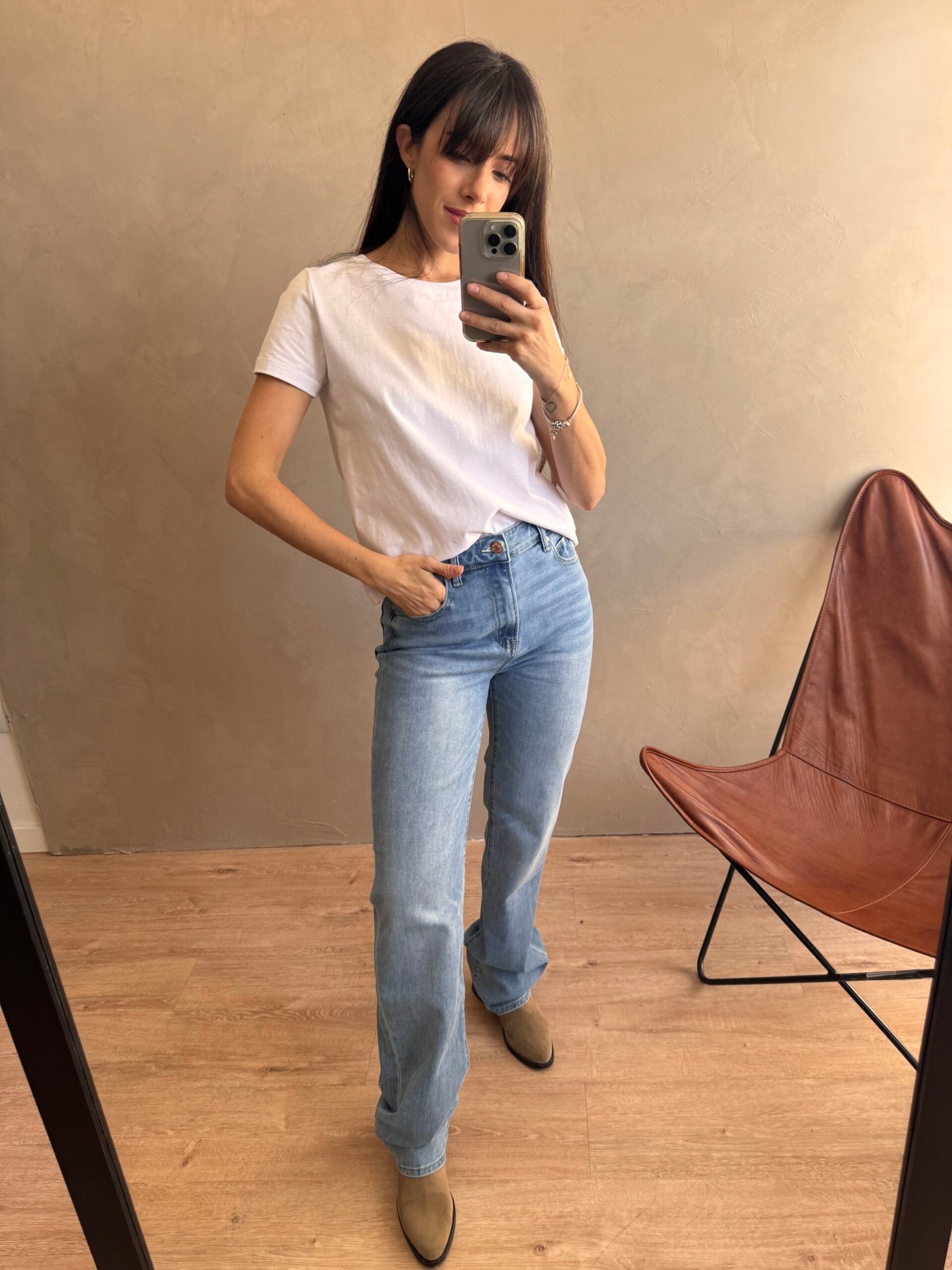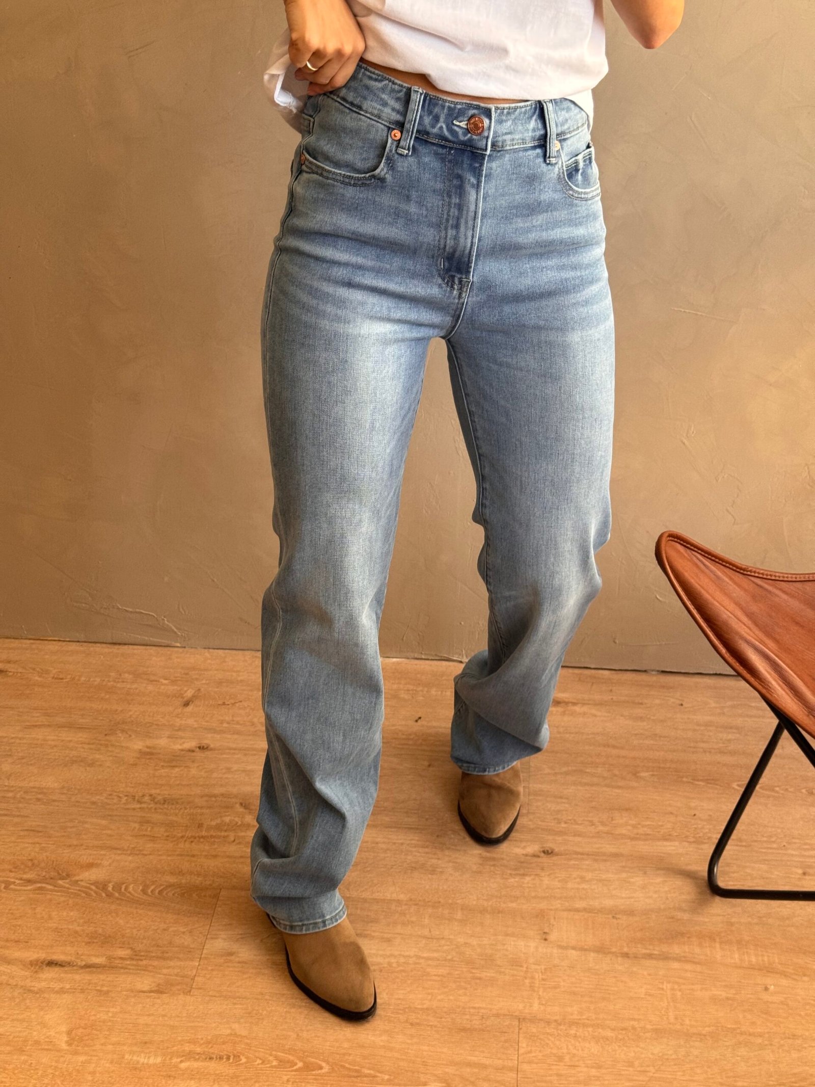 Jean elastizado de tido media, con pierna recta