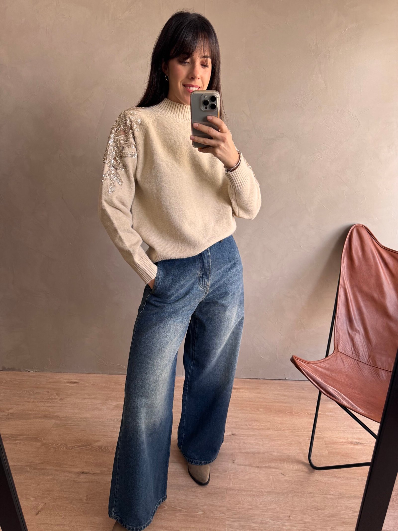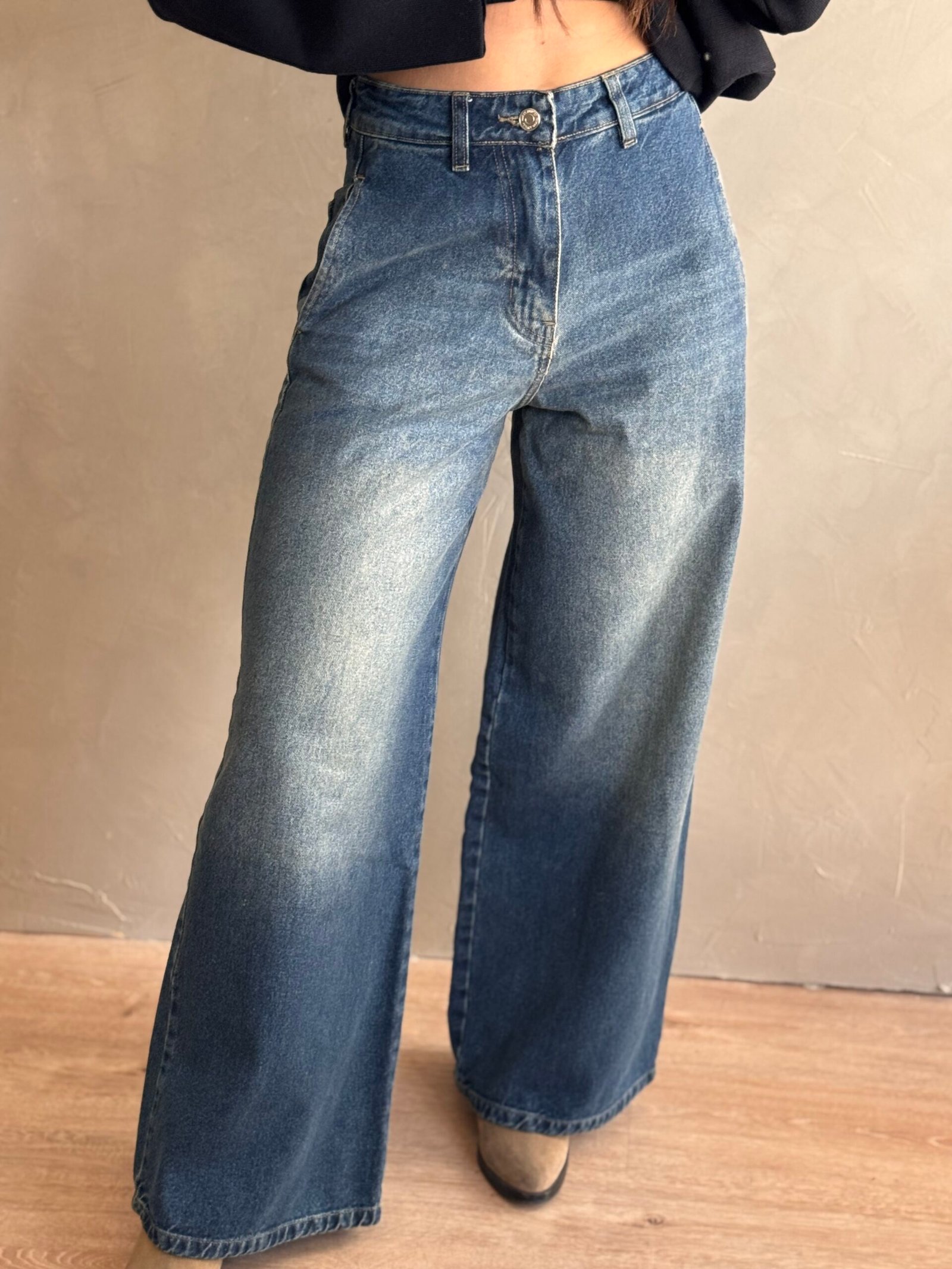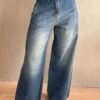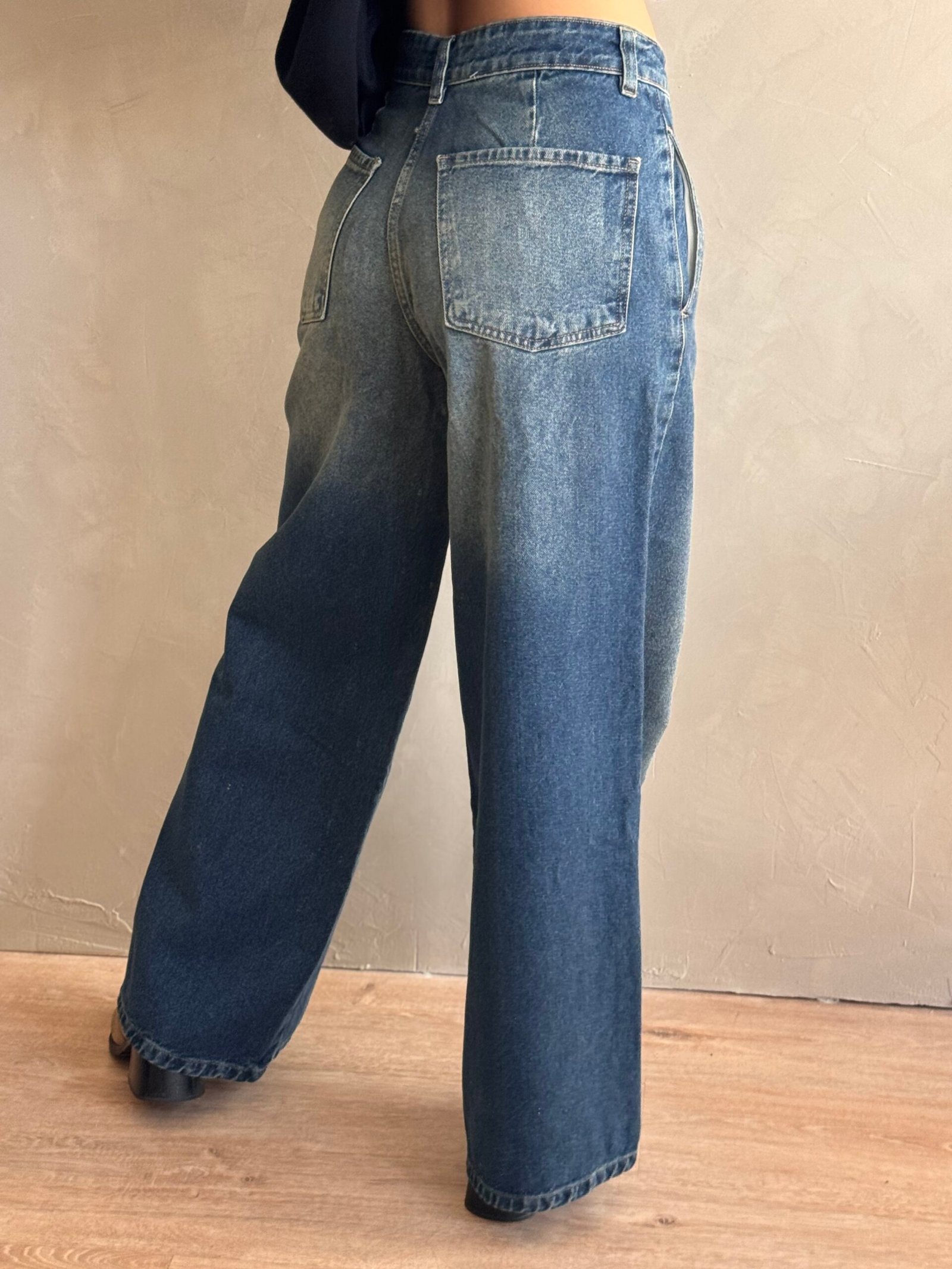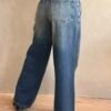Jean de corte wide leg rigido con bolsillos y de color matizado