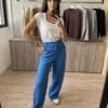 Pantalon sastrero de crepe con cintura elástica en la parte posterior