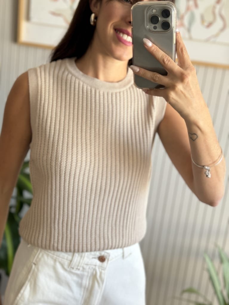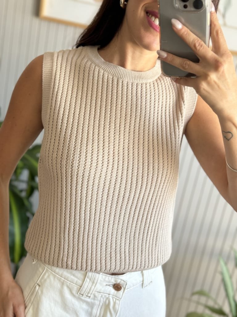 Musculosa básica tejida en lycra, ofrece flexibilidad y un ajuste perfecto al cuerpo, presenta calados delicados y cuidados proporcionando intimidad.