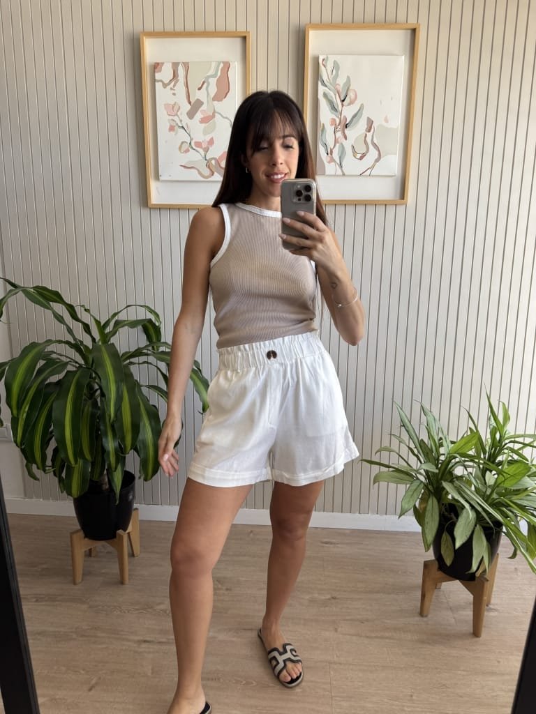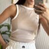 Musculosa básica con detalle de costura en cuello y sisa, terminación al corte