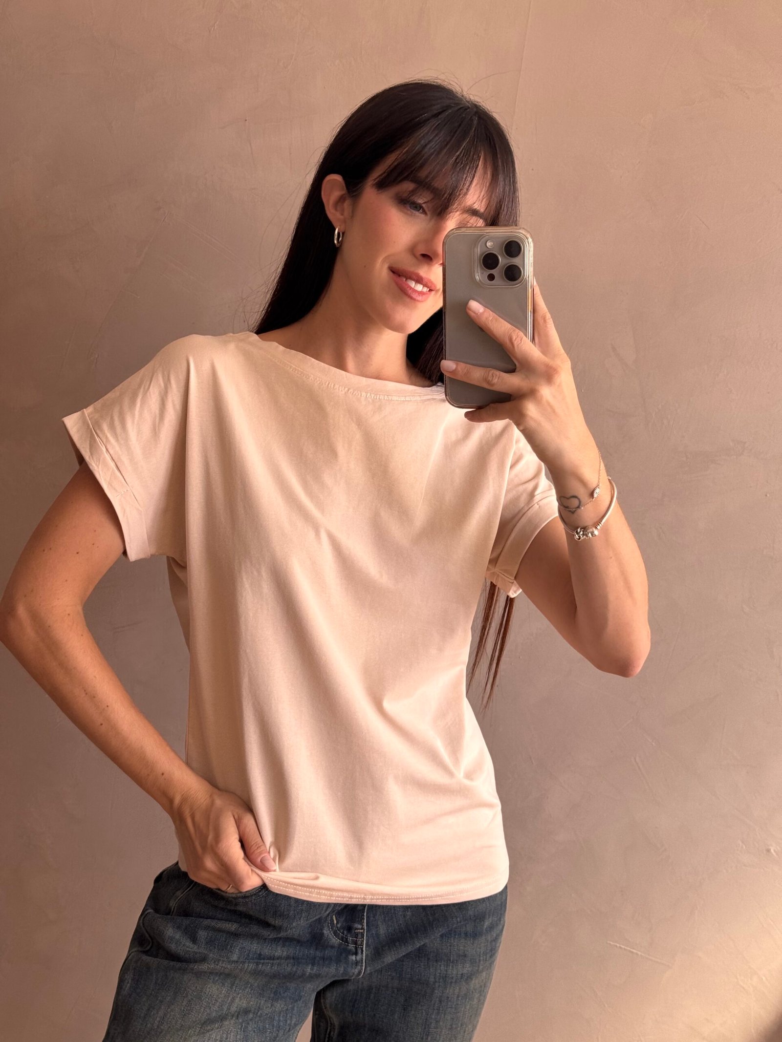 Remera básica de cuello redondo. Confeccionada en algodón con lycra premium