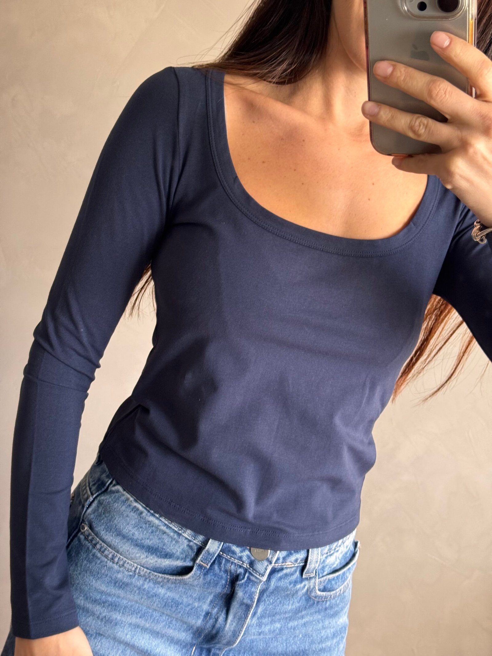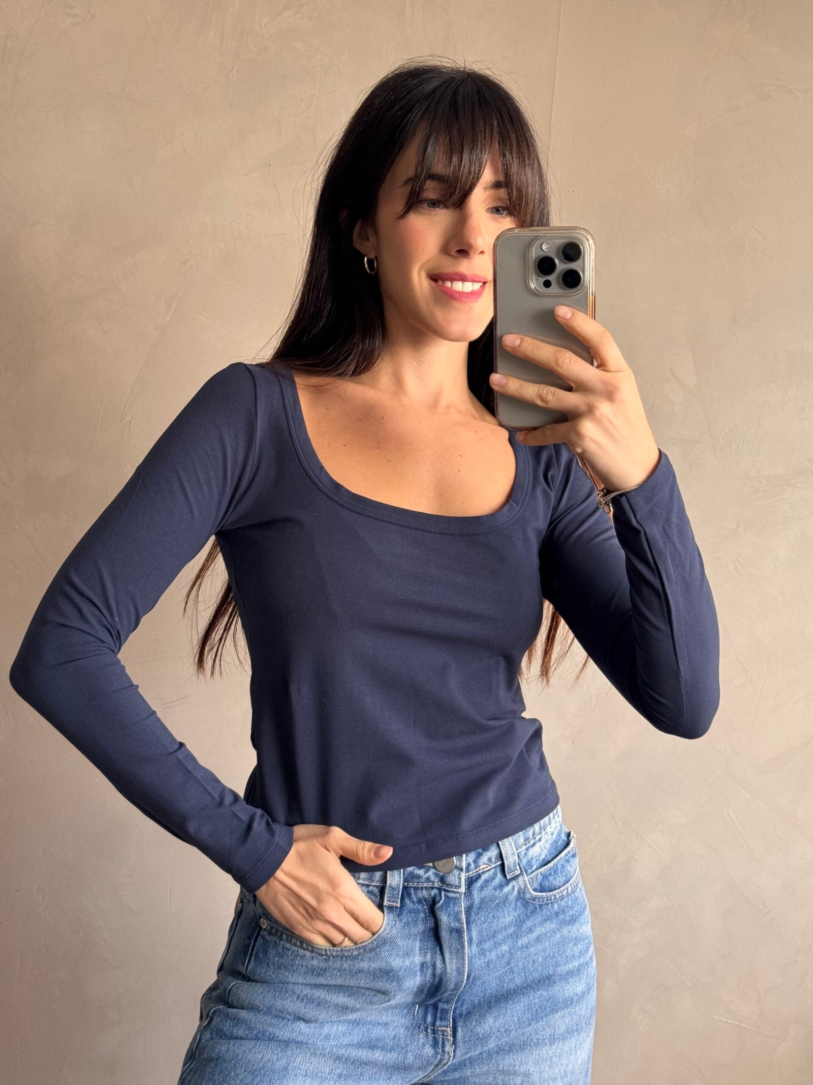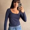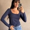 Remera basica de escote redondo bajo. Confeccionada en algodon y lycra
