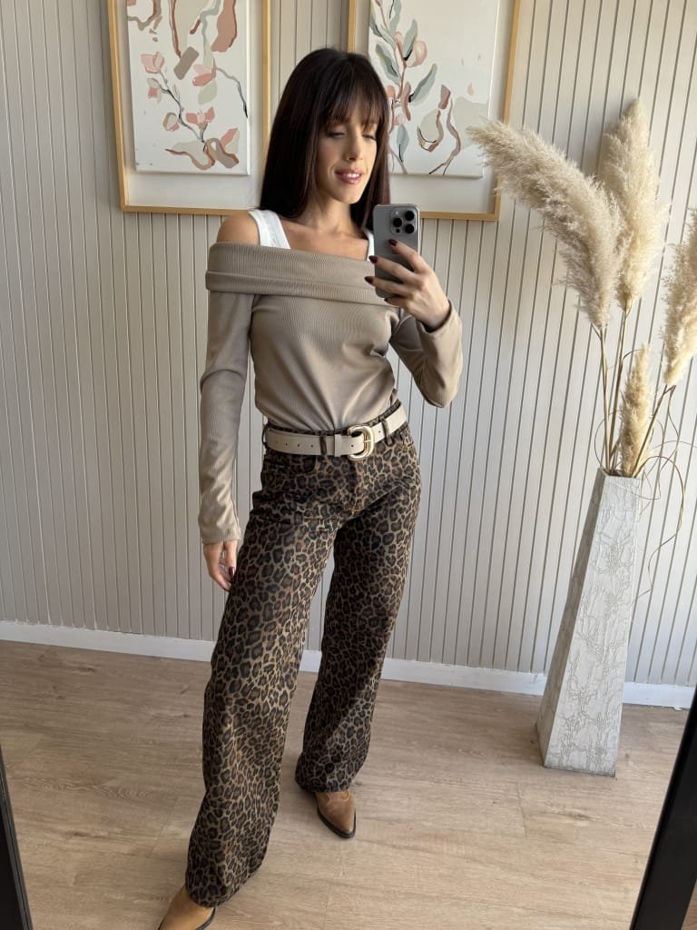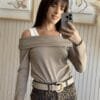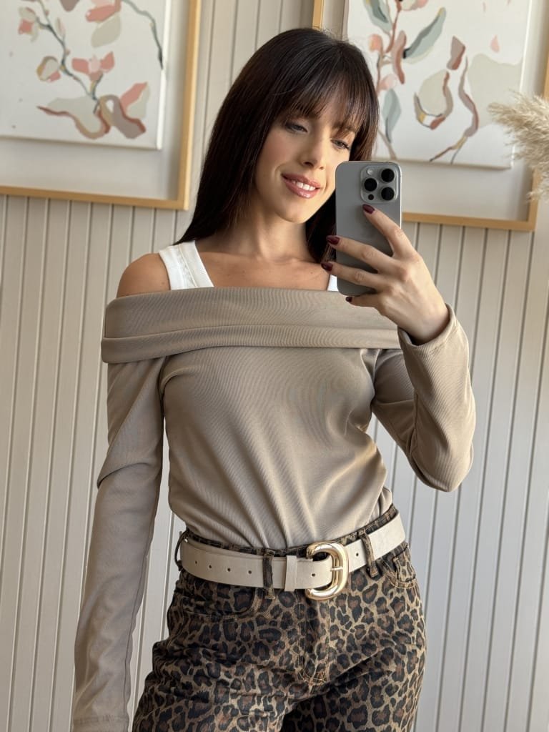Remera off shoulder o cuello bote. Se puede usar de las dos maneras.