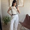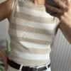 Musculosa tejida de corte crop, con cuello redondo y sisa amplia, combina estilo minimalista con comodidad. El tejido de punto elástico se adapta al cuerpo, realzando la silueta sin perder confort.