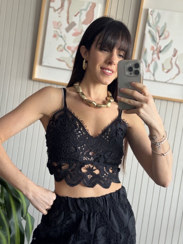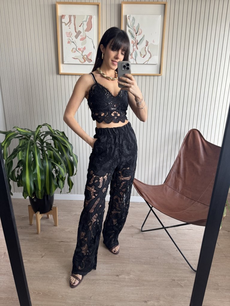 Top de crochet 100% algodón que hace juego con pantalon cibeles negro