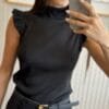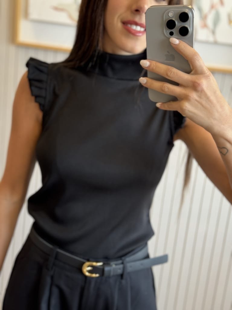 Remera de morley premium al cuello y volados en los hombros