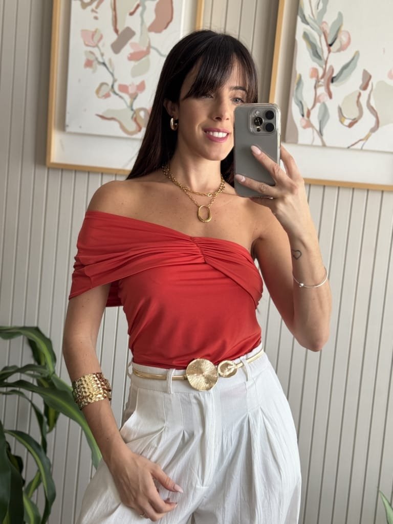 Top De Microfibra Liviana. Calce Fit Al Cuerpo. El Top Estilo Strapless Cuenta Con El Delantero Forrado Para Evitar Transparencias, Y En Diagonal Una Pieza Fruncida Desde El Lateral Que Cubre El Hombro Izquierdo . Largo Hasta La Cadera