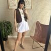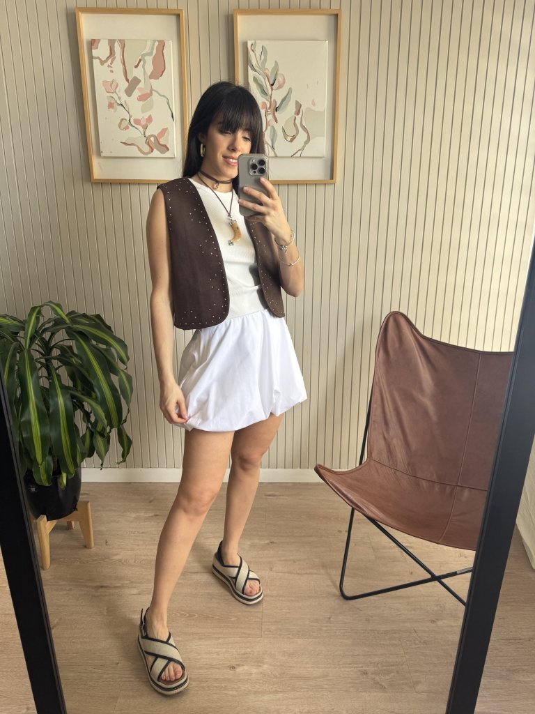 Falda corta tiro medio con volumen. La falda esta forrada y en su interior tiene un short incorporado, también confeccionado en forrería. Elástico en cintura y en ruedo generando volumen. Confeccionada en tela sastrera