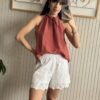 SHORTS DE BRODERIE 100% ALGODÓN CON FORRERÍA. CON ELÁSTICO Y LAZOS AJUSTABLES.