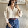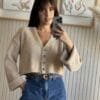 Cardigan crop confeccionado con lana “pelo de mono”.