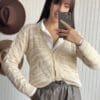 La combinación de materiales suaves y cálidos crea una prenda cómoda y acogedora para usar en días fríos. La técnica de trama en forma de rombo añade un toque interesante y texturizado a la superficie del cardigan,