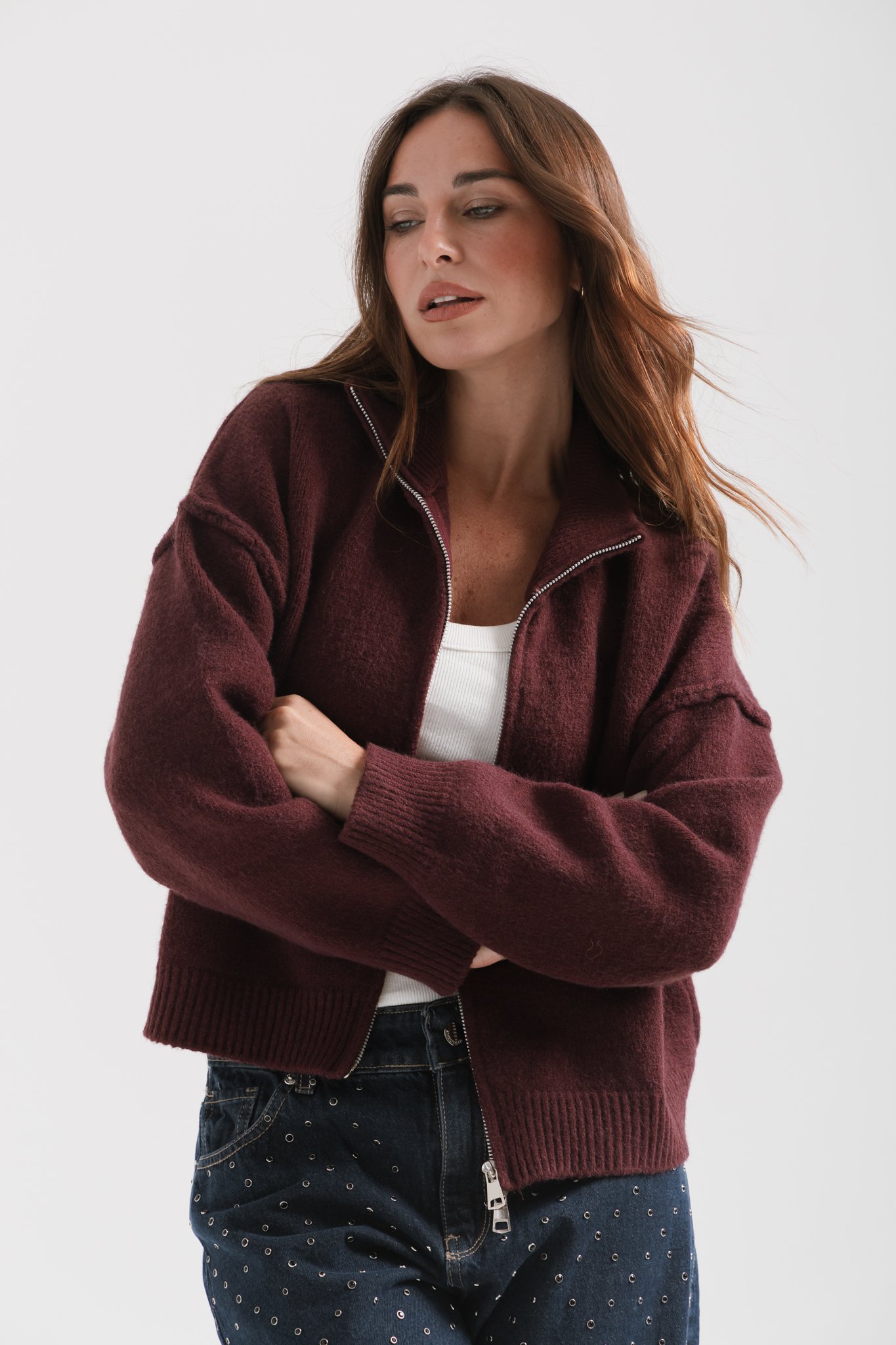 Sweater cardigan de lana con doble cierre