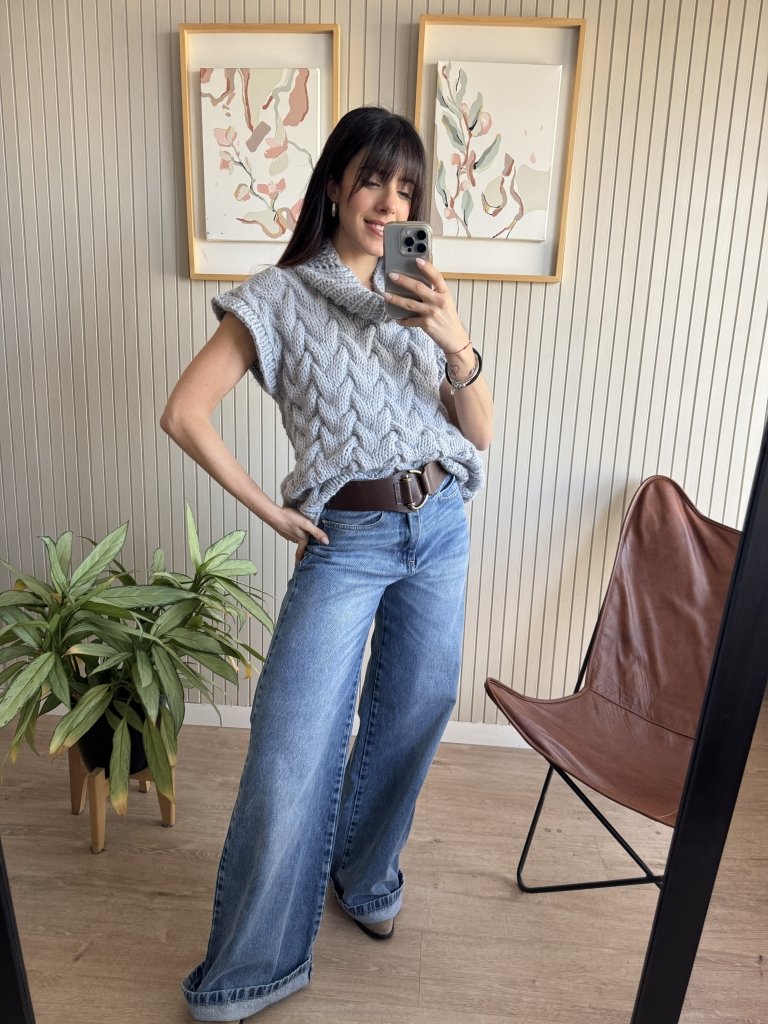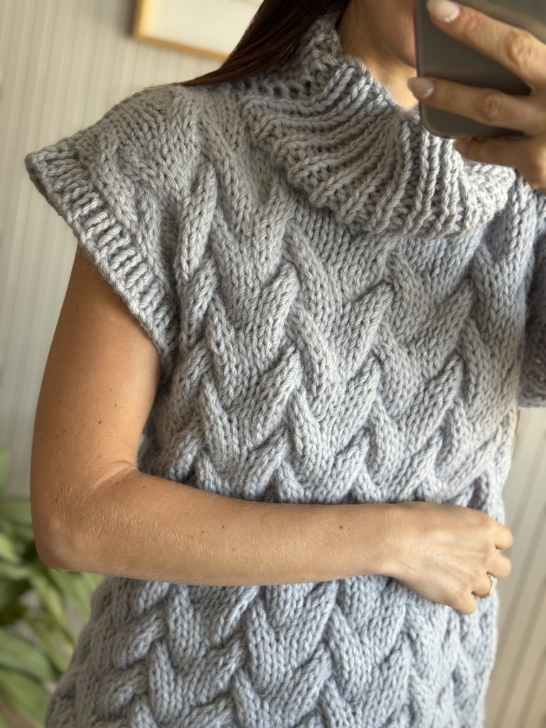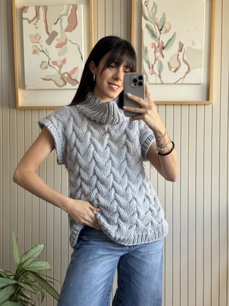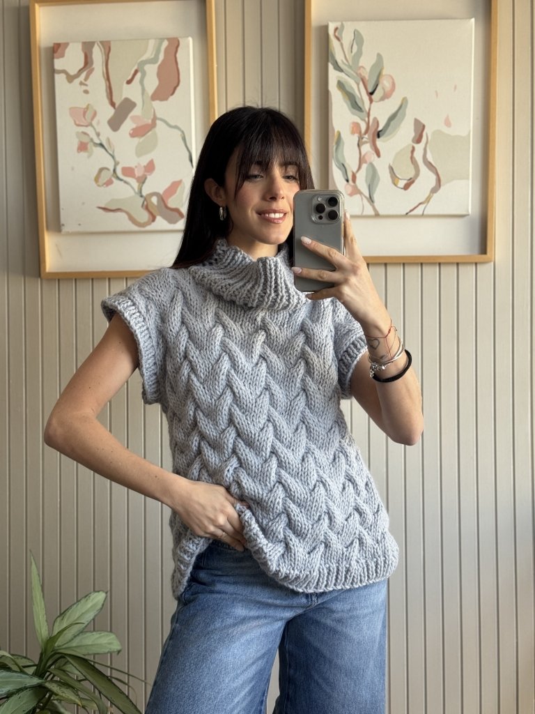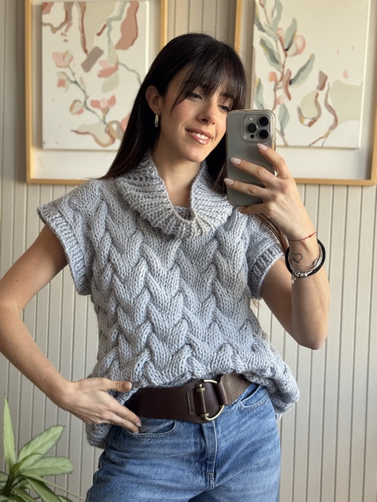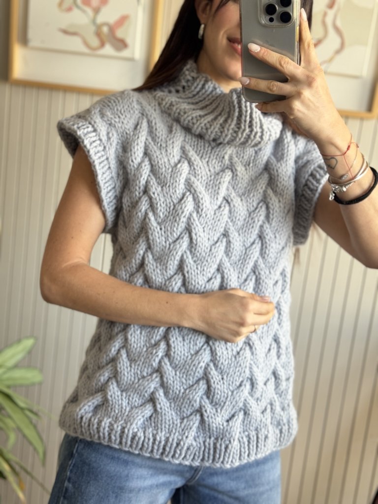 Chaleco con punto trenzado y cuello volcado