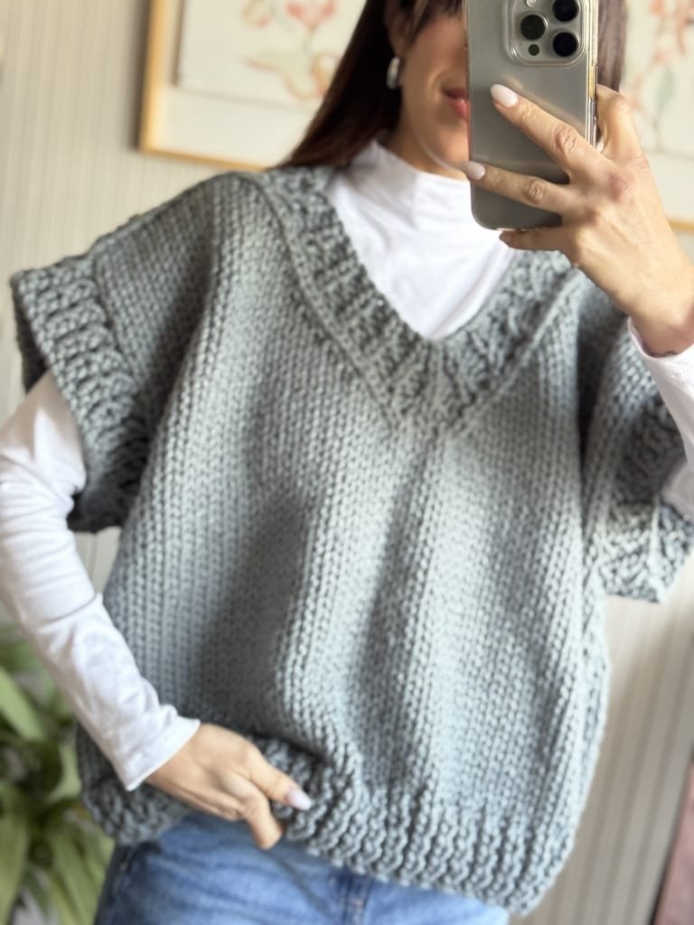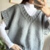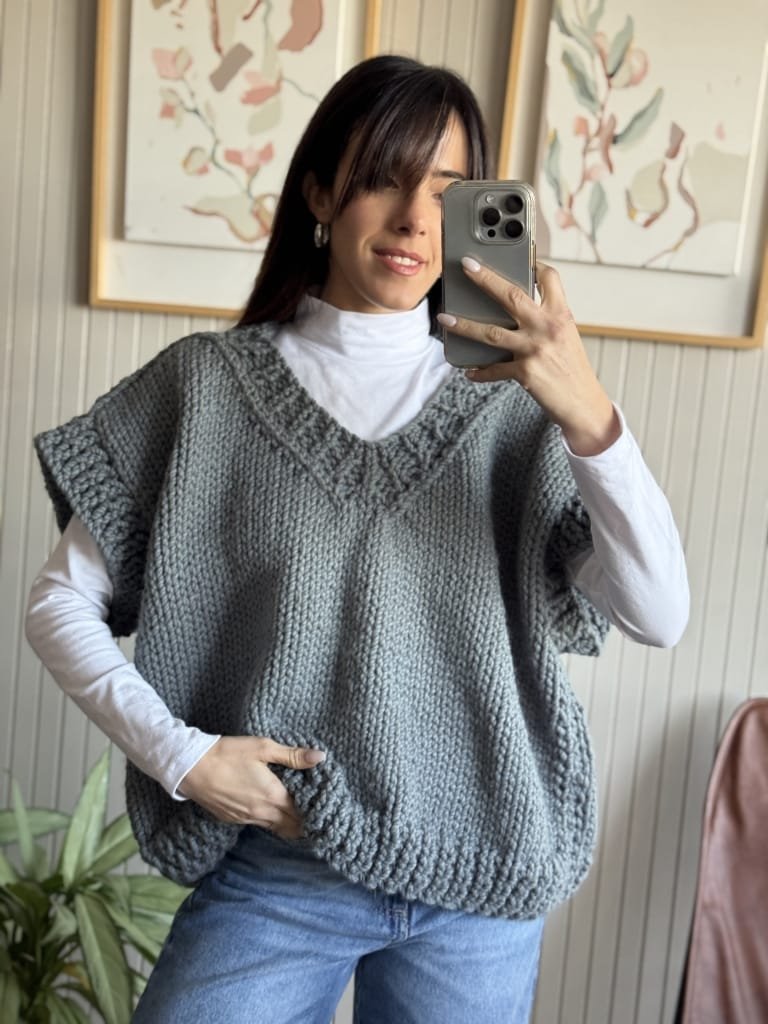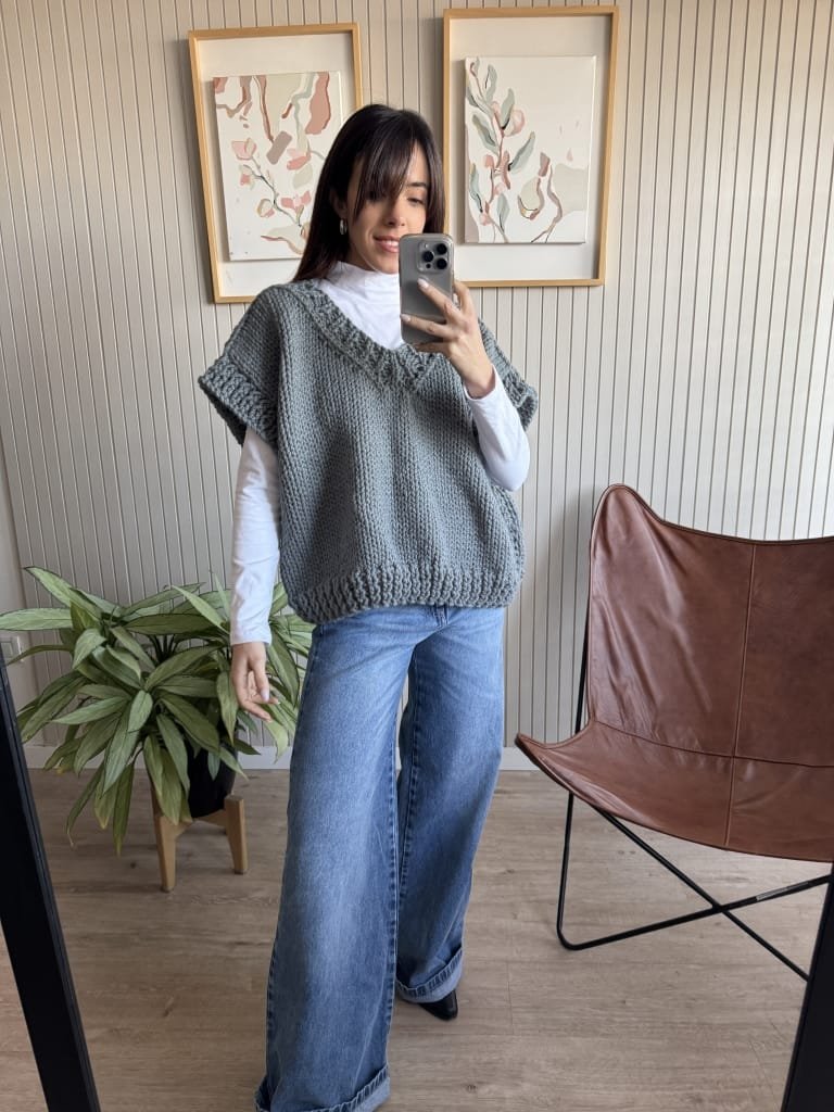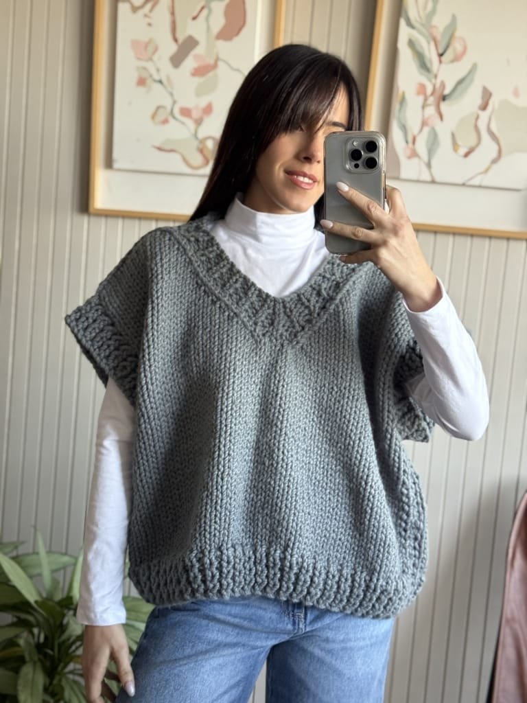 Chaleco hecho a mano con escote en v y detalle de dos puntos.