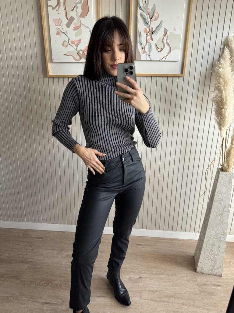 Polera de morley tejida al cuerpo. Abarca desde un talle S a un L por la elasticidad de la tela