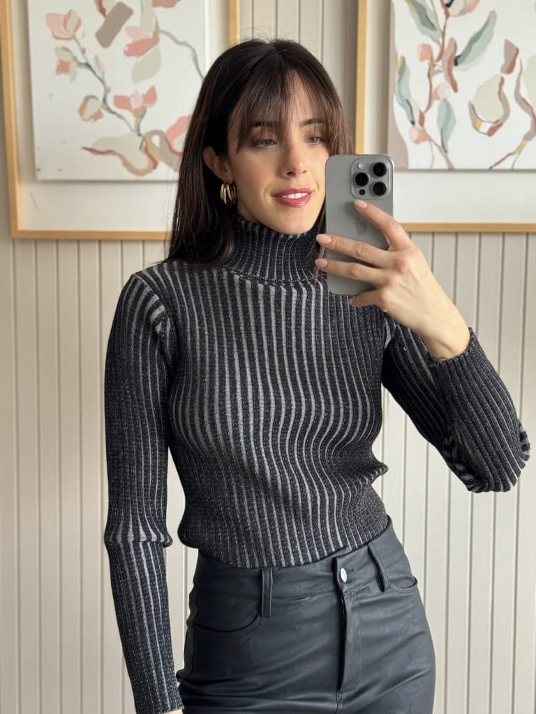 Polera de morley tejida al cuerpo. Abarca desde un talle S a un L por la elasticidad de la tela