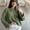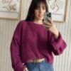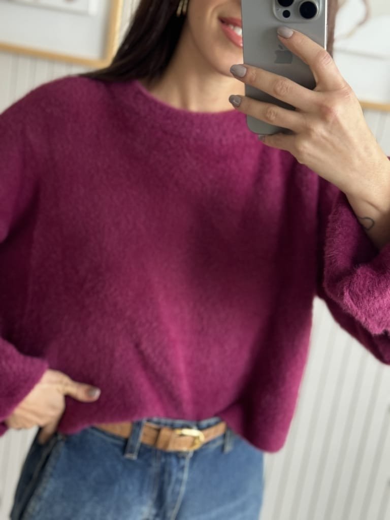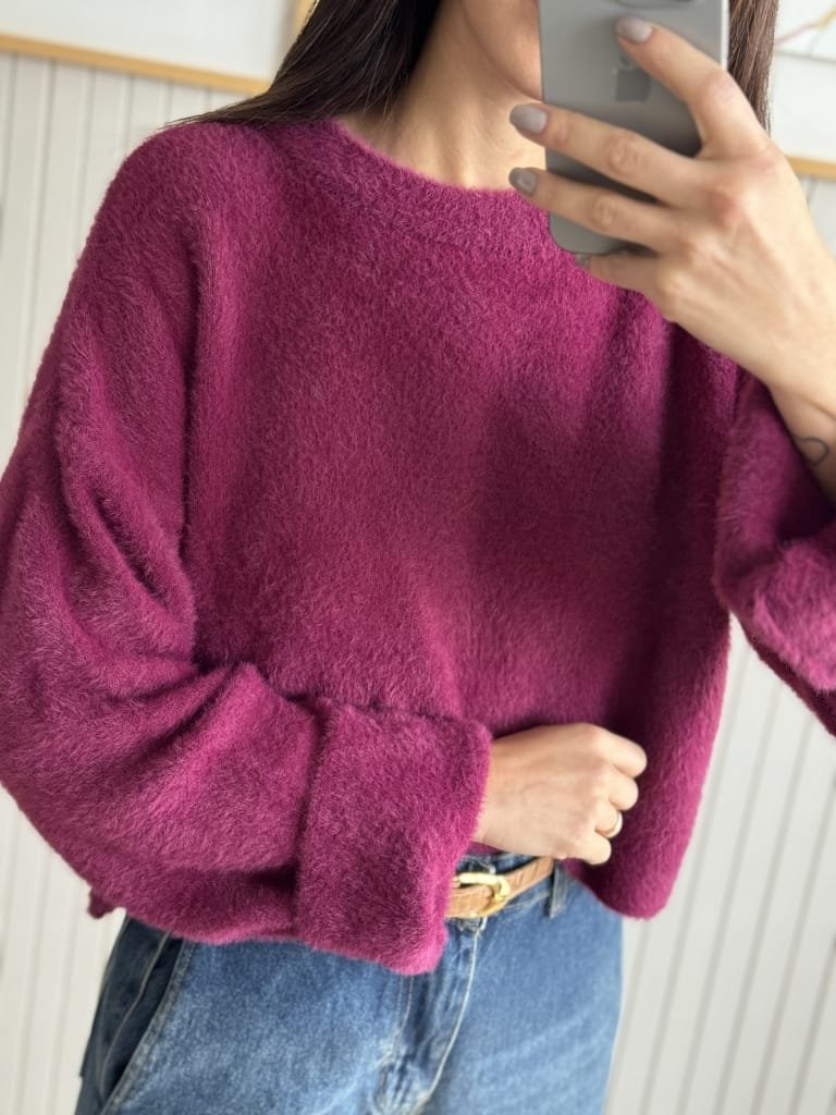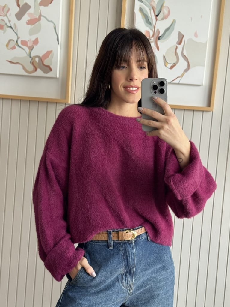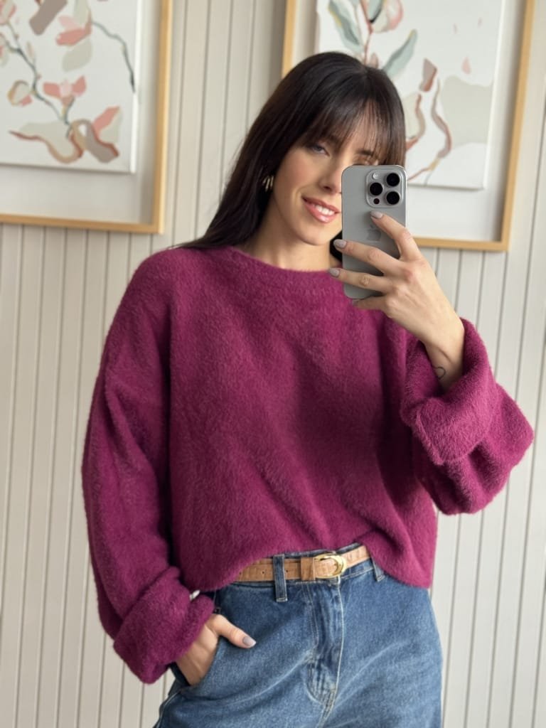 Sweater de textrua suave y escote redondo y caida (sin elástico).