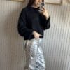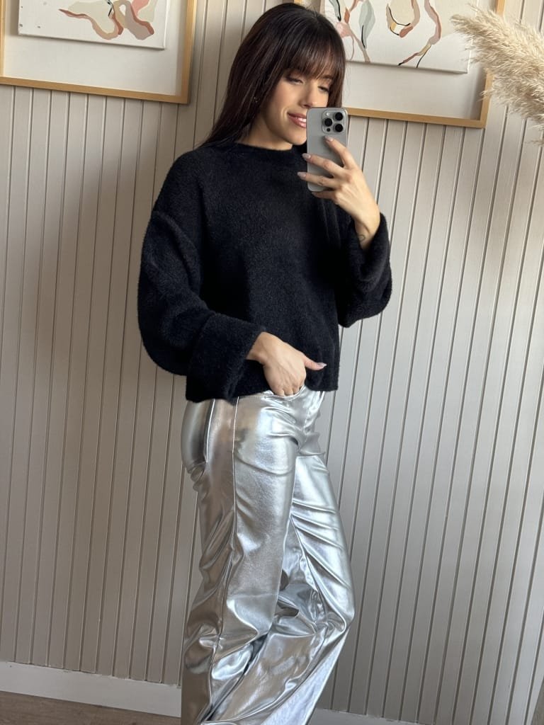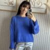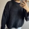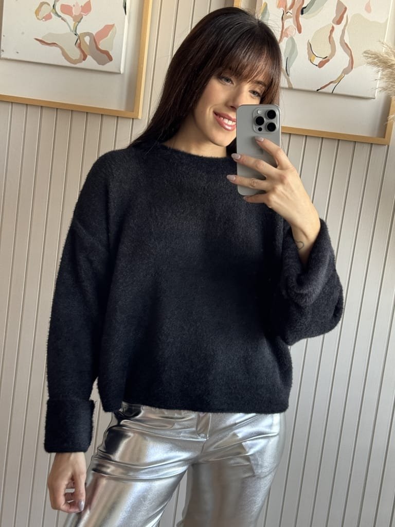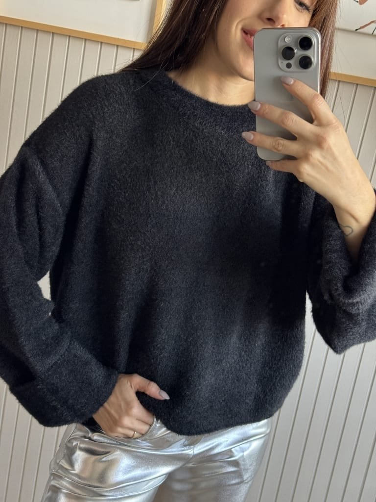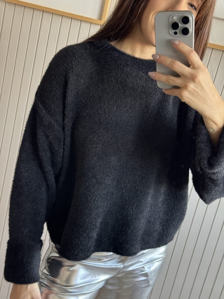 Sweater de textrua suave y escote redondo y caida (sin elástico).