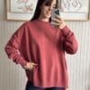 Tejido de punto. Diseño oversize. Cuello redondo. Manga larga.