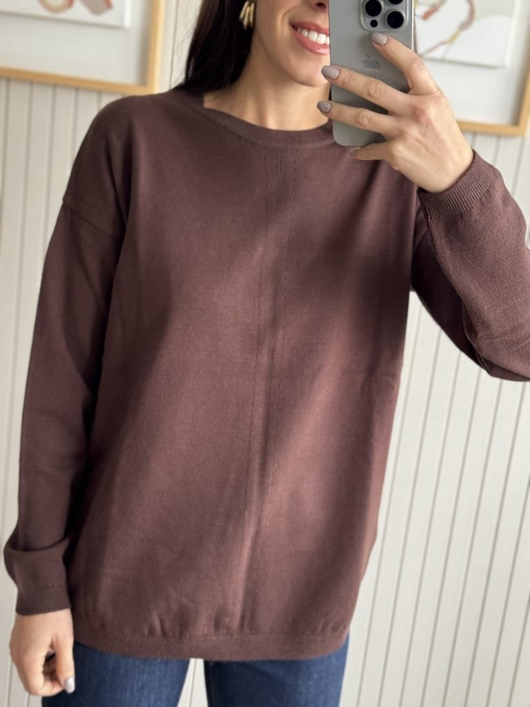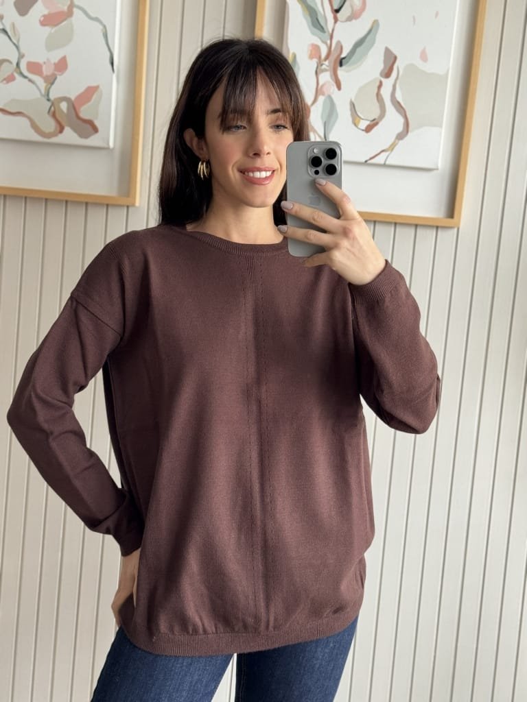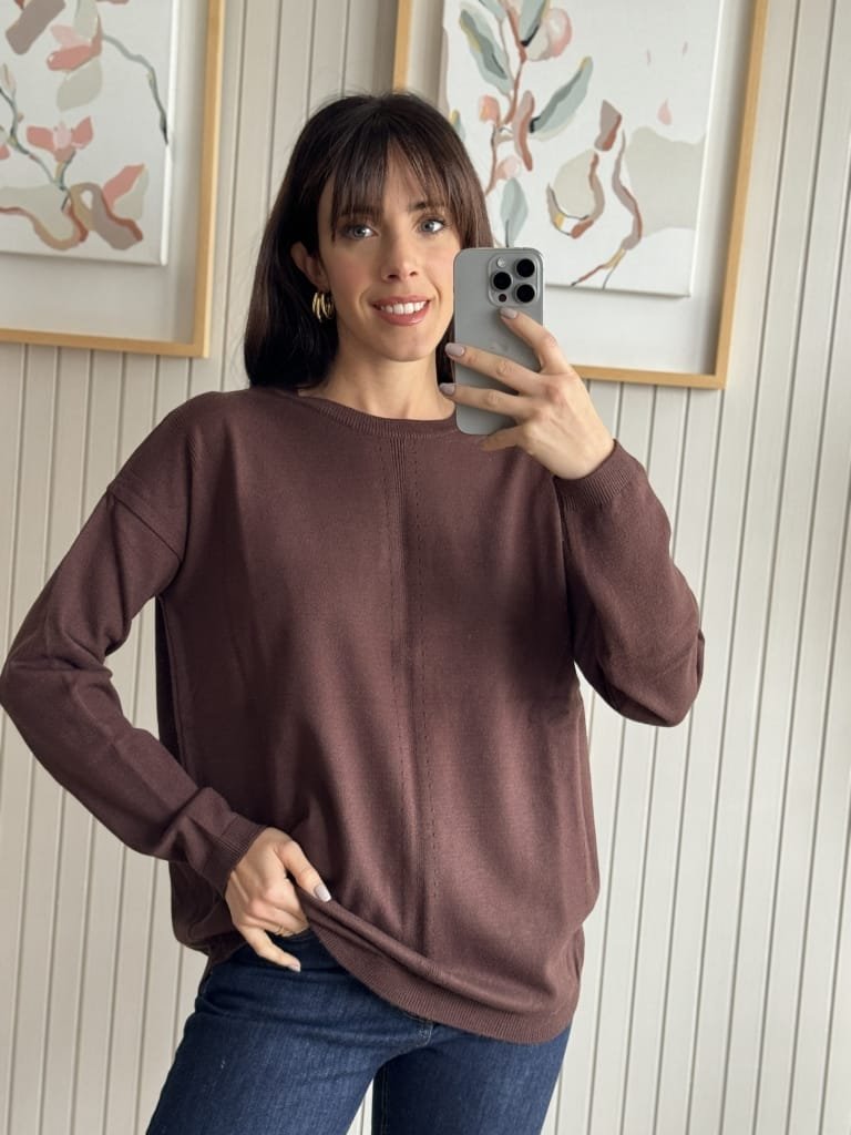 Este sweater cuenta con 3 líneas de puntos y es elegante y sofisticado. Su tejido suave y cómodo lo hace perfecto para días frescos.