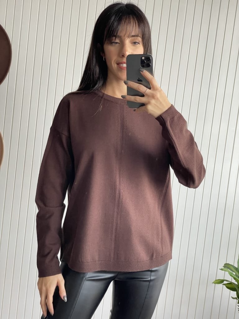 Este sweater cuenta con 3 líneas de puntos y es elegante y sofisticado. Su tejido suave y cómodo lo hace perfecto para días frescos.