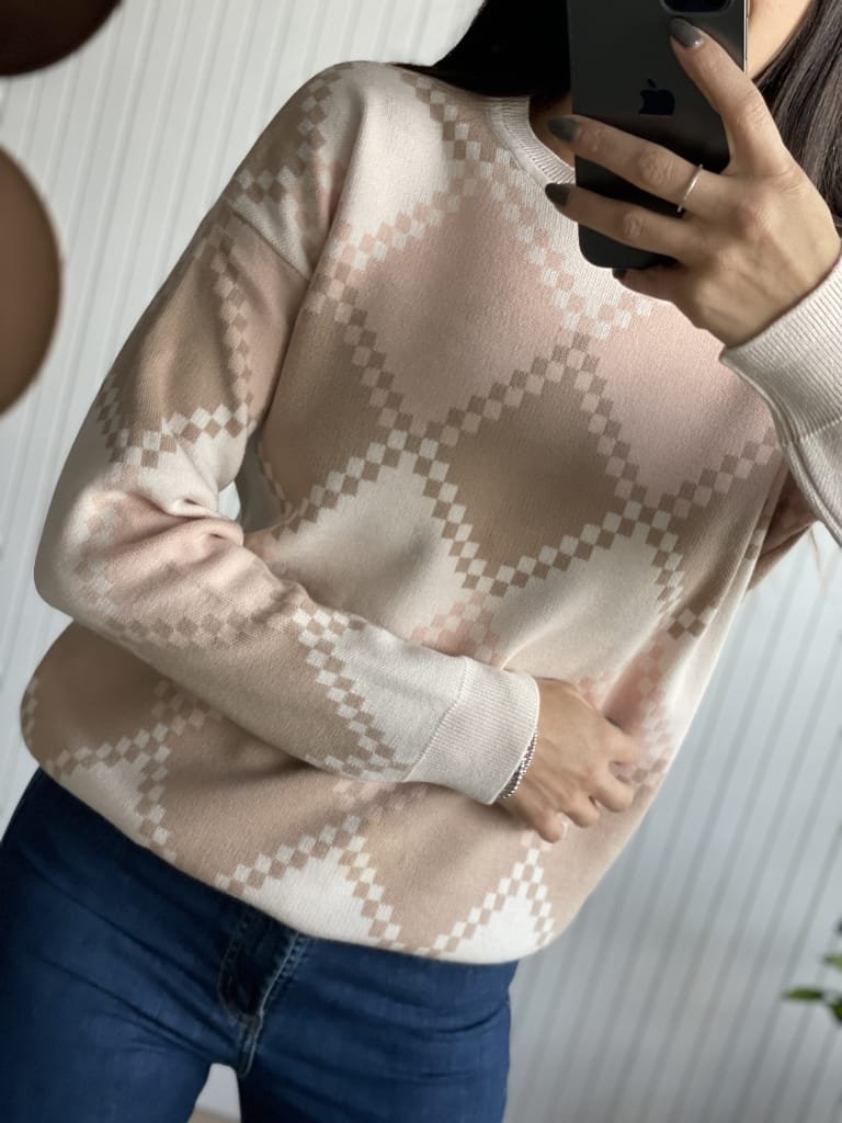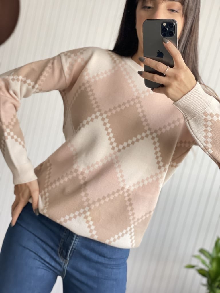 Este suéter con un diseño jacquard es una pieza elegante y versátil para cualquier ocasión. Con su tejido suave y cómodo, serás cómodo durante todo el día, mientras el diseño jacquard añade un toque sofisticado a tu atuendo