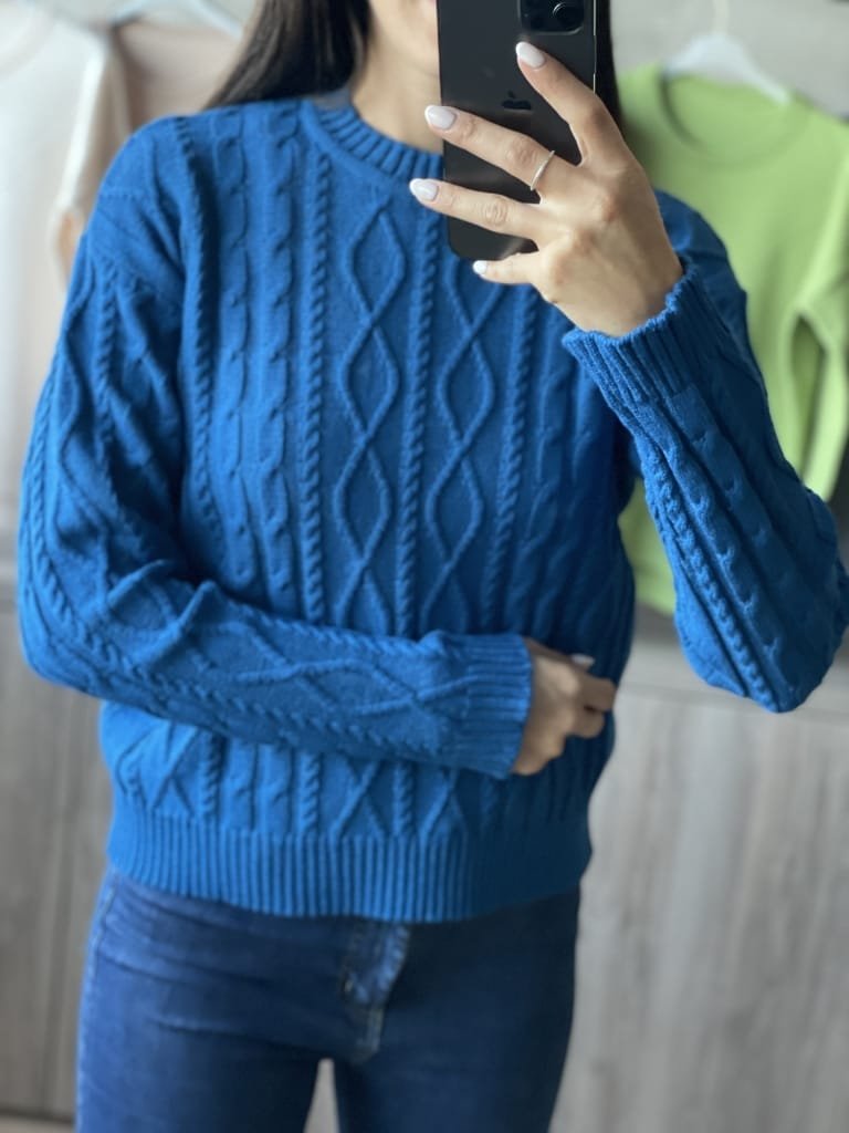 El sweater con trenzas es una prenda cómoda que se ajusta al cuerpo sin apretar.