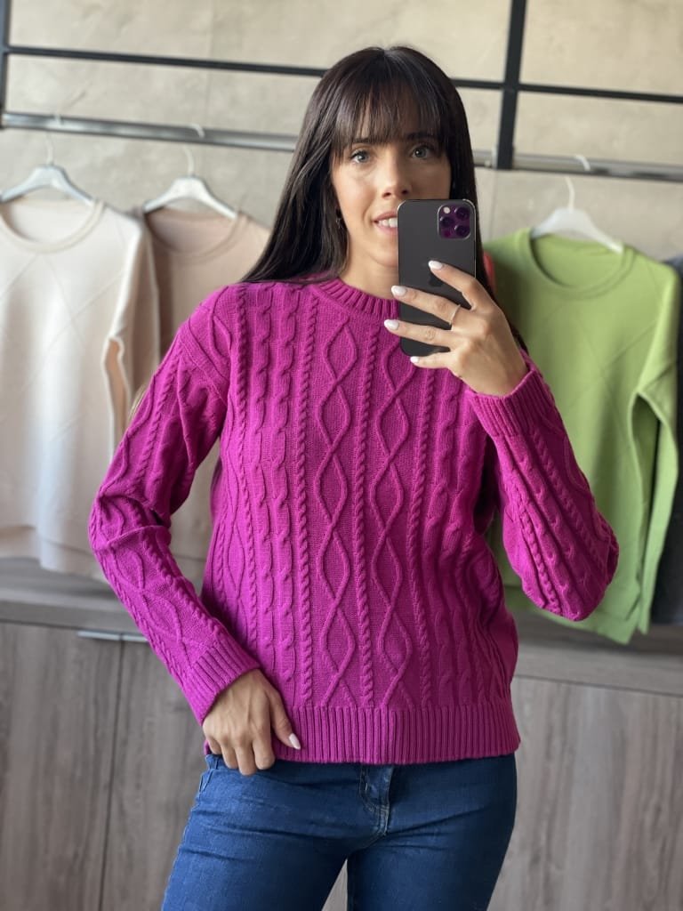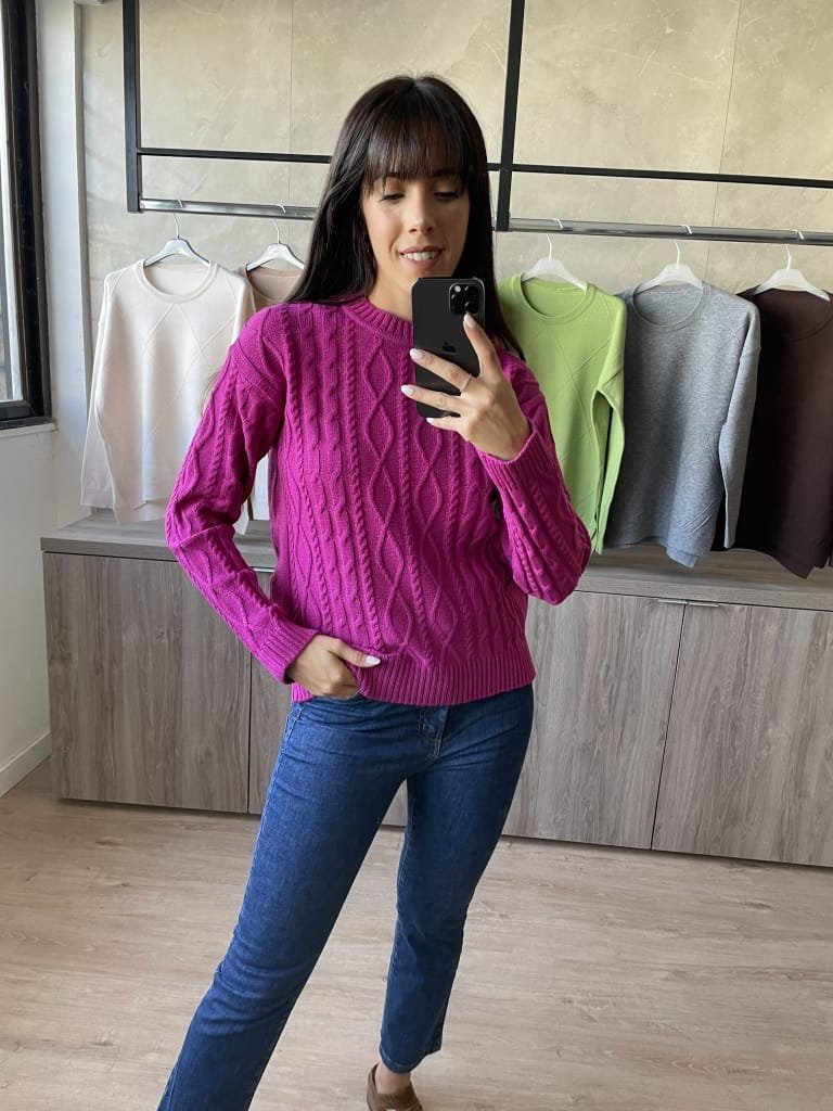 El sweater con trenzas es una prenda cómoda que se ajusta al cuerpo sin apretar.