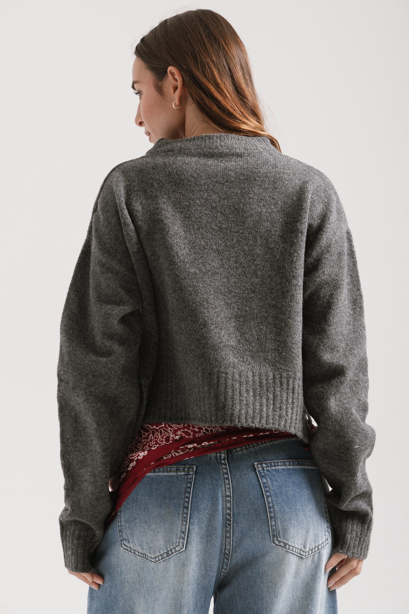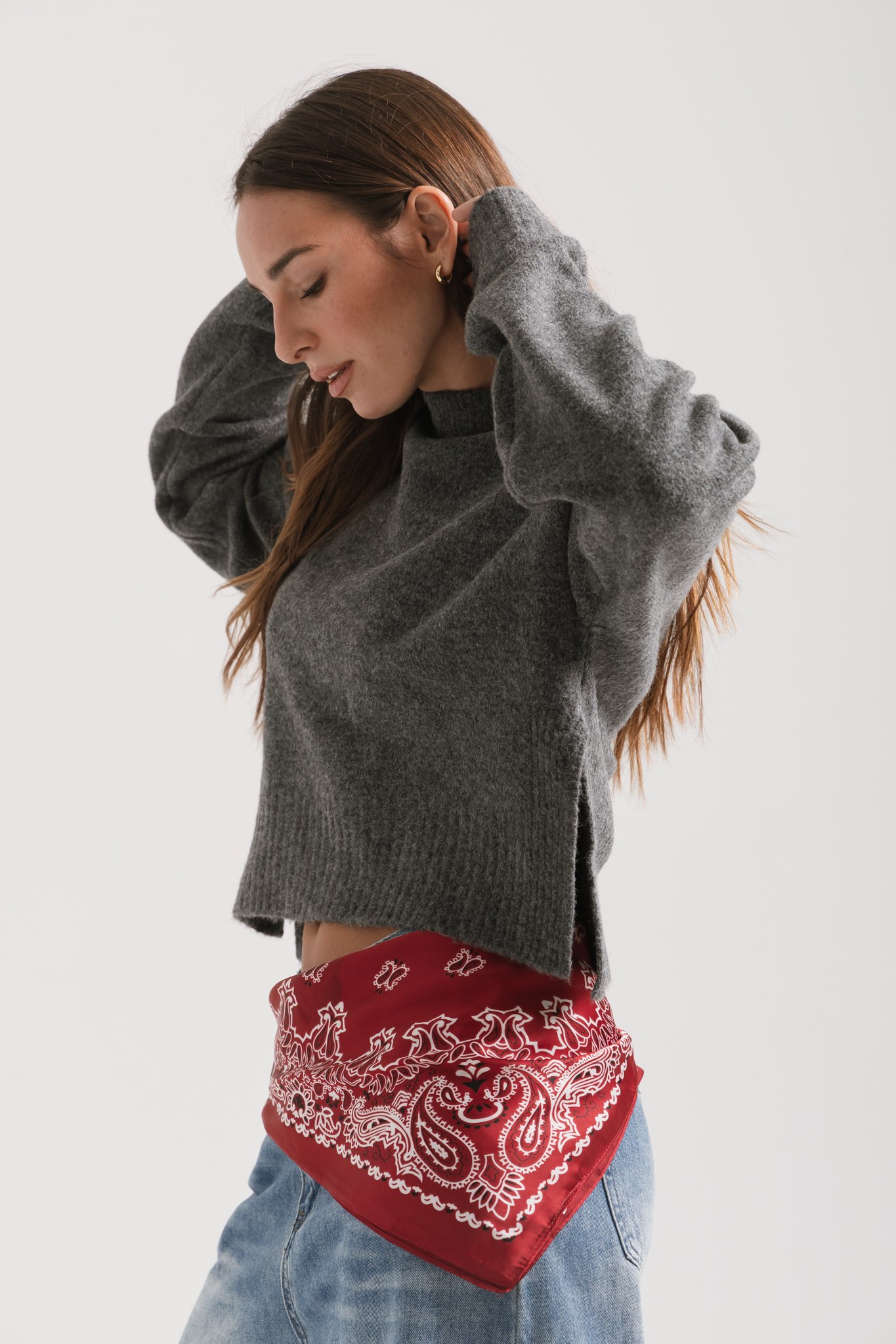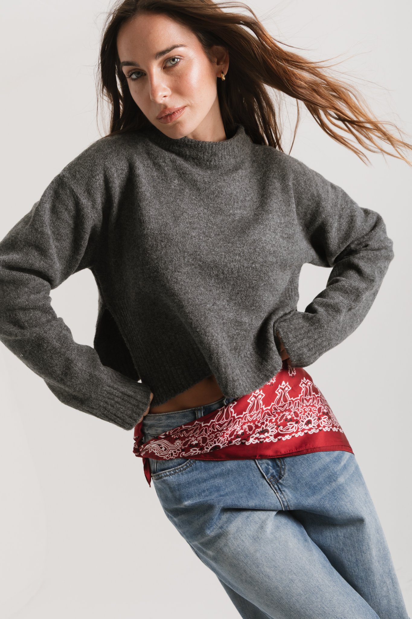 Sweater básico de escote redondo y tajos al costado