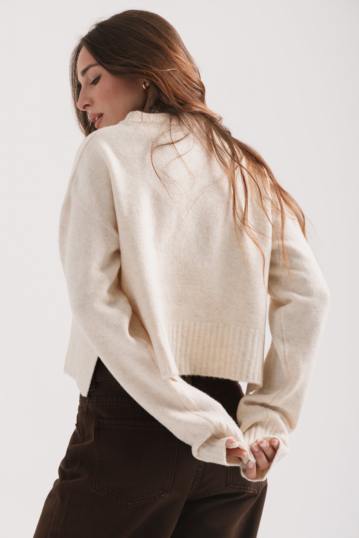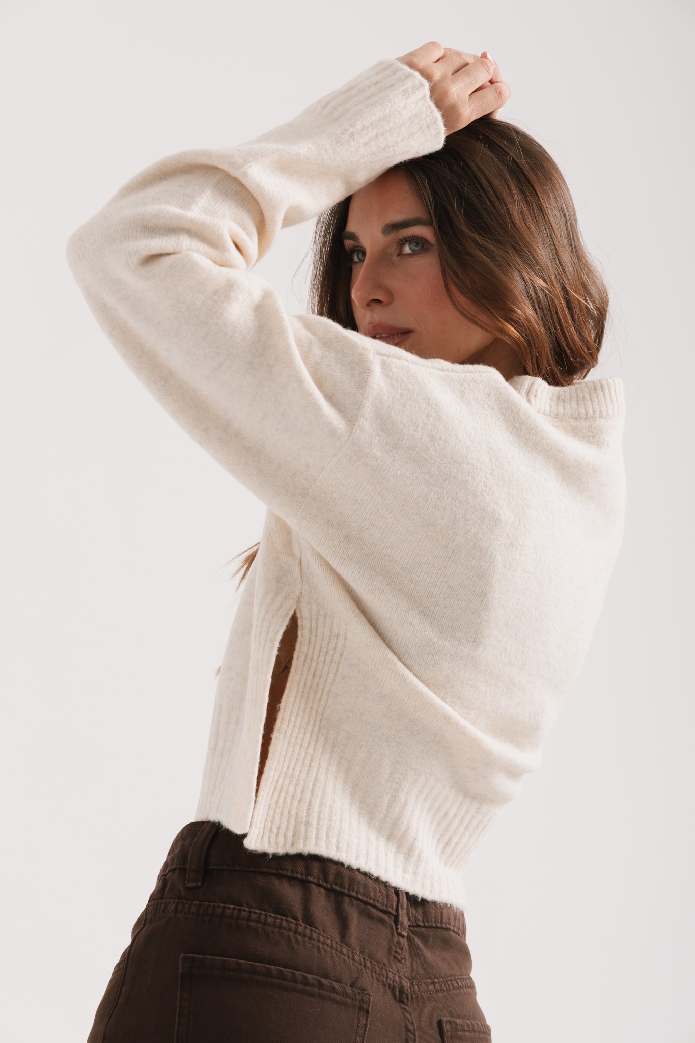 Sweater básico de escote redondo y tajos al costado