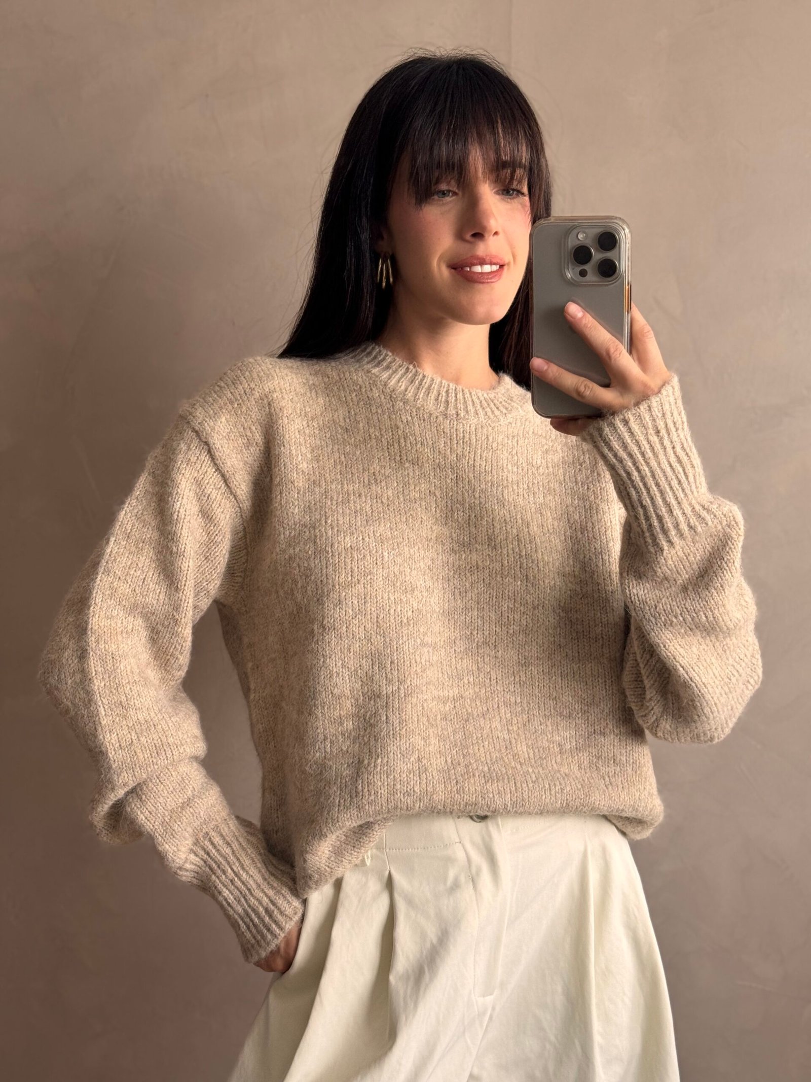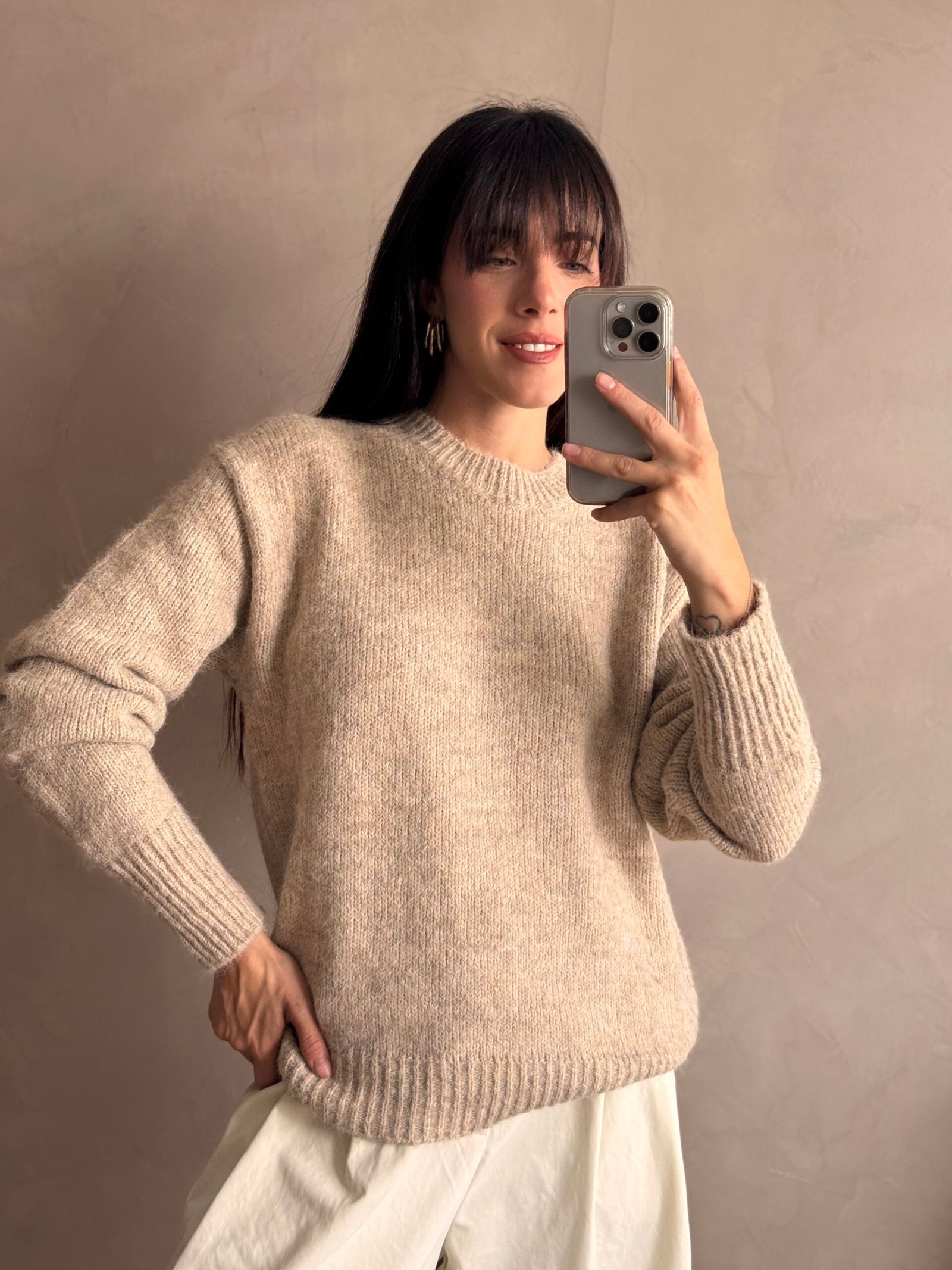 Sweater basico de lana con terminaciones en ribb