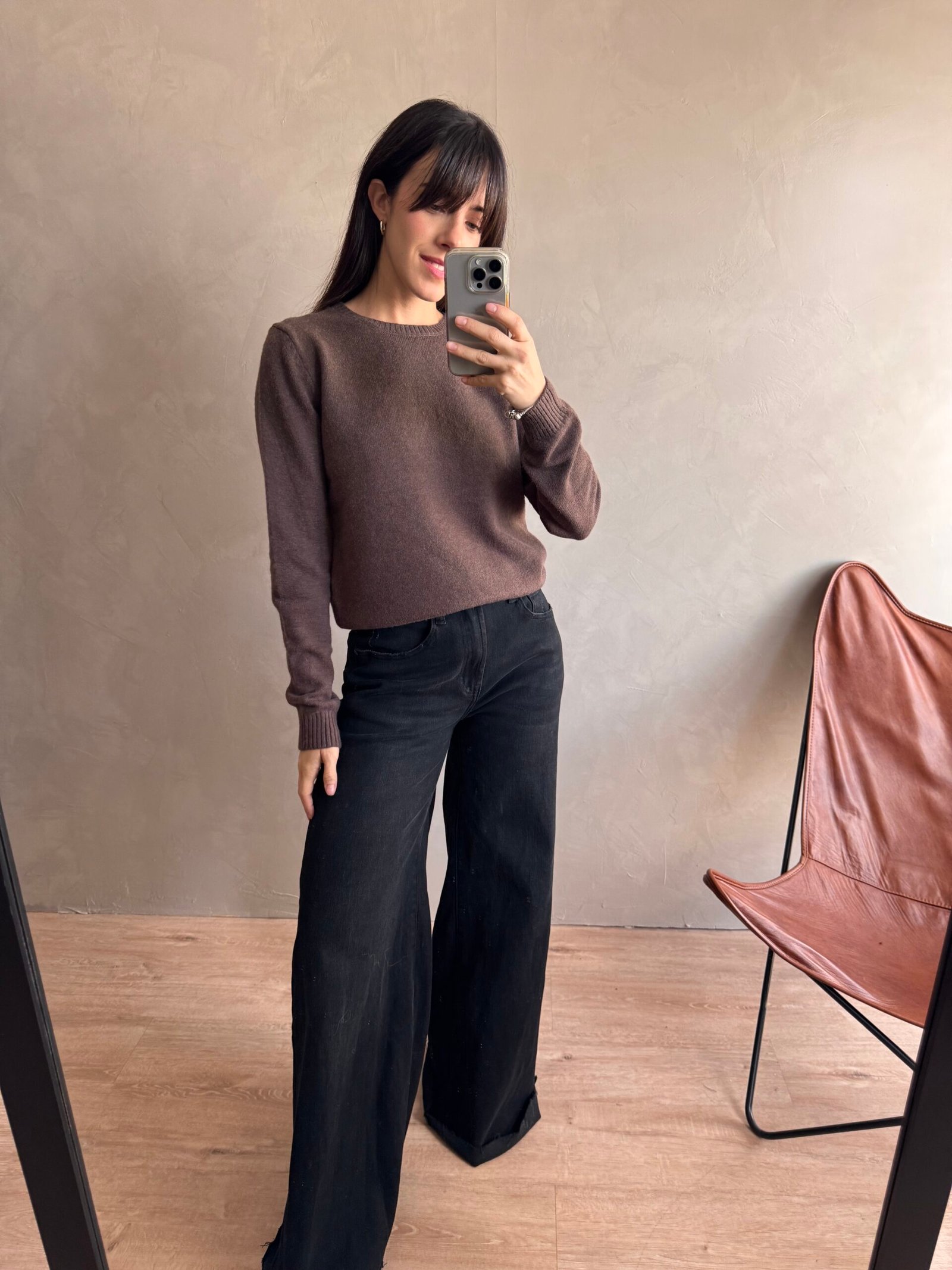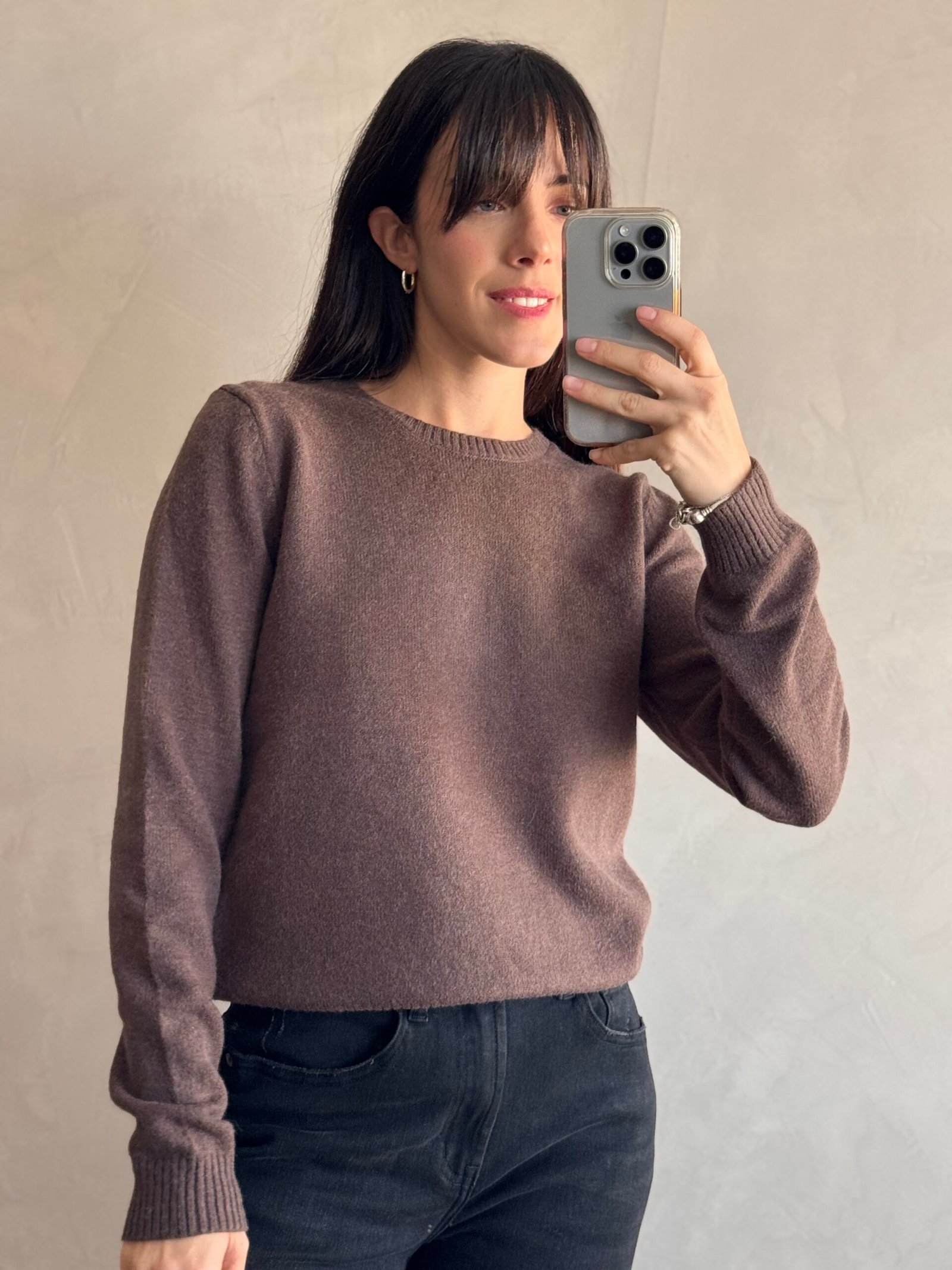 Sweater tejido manga larga de cuello redondo. Fit entallado.