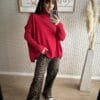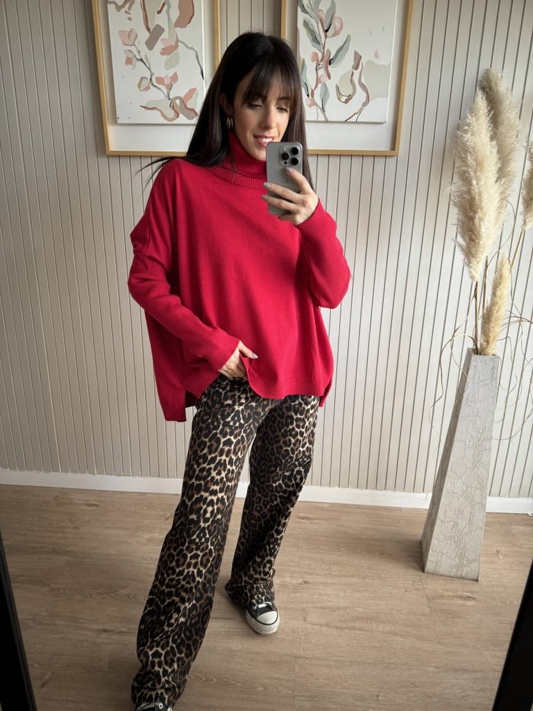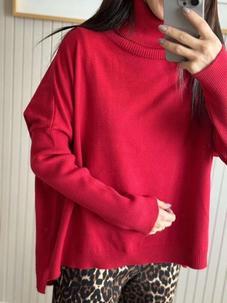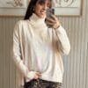 Diseño oversize. Cuello vuelto. Costura del hombro caída. Terminaciones en canalé. Aberturas laterales.